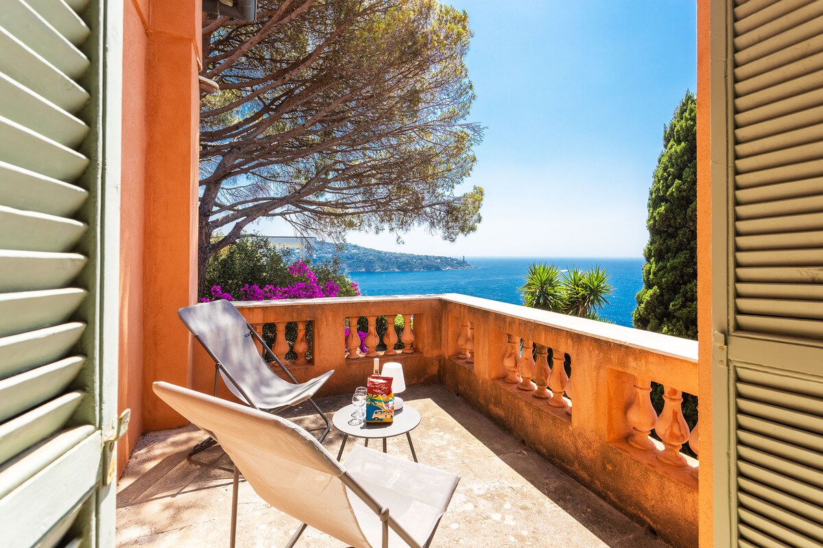 Magnificent sea view for this air-conditioned seasonal rental villa La Villa Rêve D'azur located at Nice Cape and close to Villefranche sur mer, this 180m2 holiday villa can comfortably accommodate 10 people, it is located only 1km from the "Carrefour Market du Mont Boron" supermarket, and 5 km from Villefranche sur mer city centre and 2.5km from La Réserve beach in Nice. Bus stop nearbyIt has garden furniture, terrace, iron, internet access (wifi), balcony, electric heating, parking for 2 cars