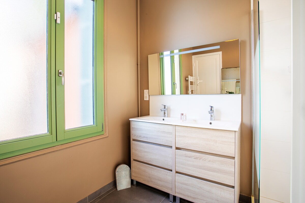 3 bedrooms all facing the sea with a double bed each, a bathroom with shower and 1 independent toilet + 1 other outside on the terrace