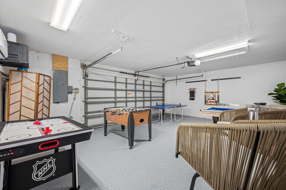 Step into your private resort sanctuary, featuring an expansive outdoor haven complete with a sparkling pool, professional-grade basketball courts, and a cozy fire pit lounge. Inside, challenge your group to non-stop fun in the unrivaled Game Room, boasting pool, ping pong, and air hockey. This professionally designed retreat offers unparalleled comfort and sophisticated entertainment, guaranteeing an extraordinary escape for the entire family.🗺️ Premier Location Highlights