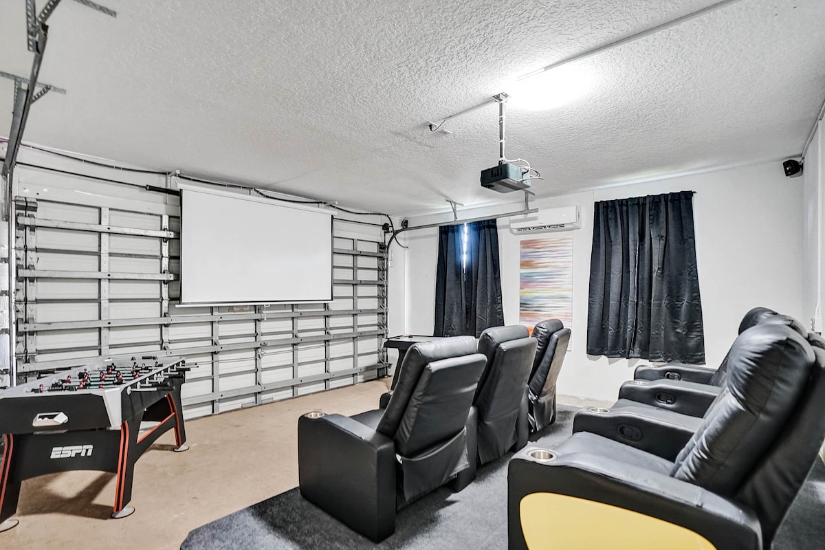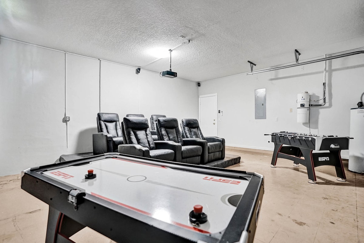 Game room and theater room - theater chairs and projector, air hockey, and Foosball table.