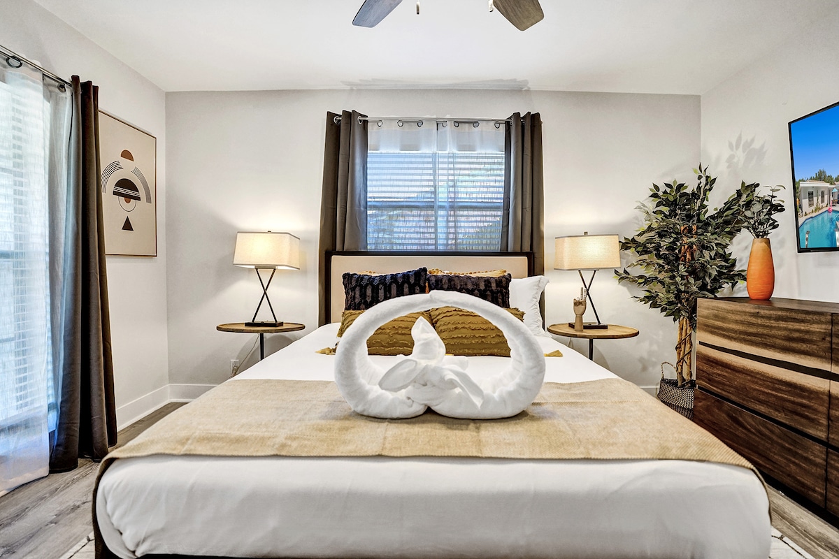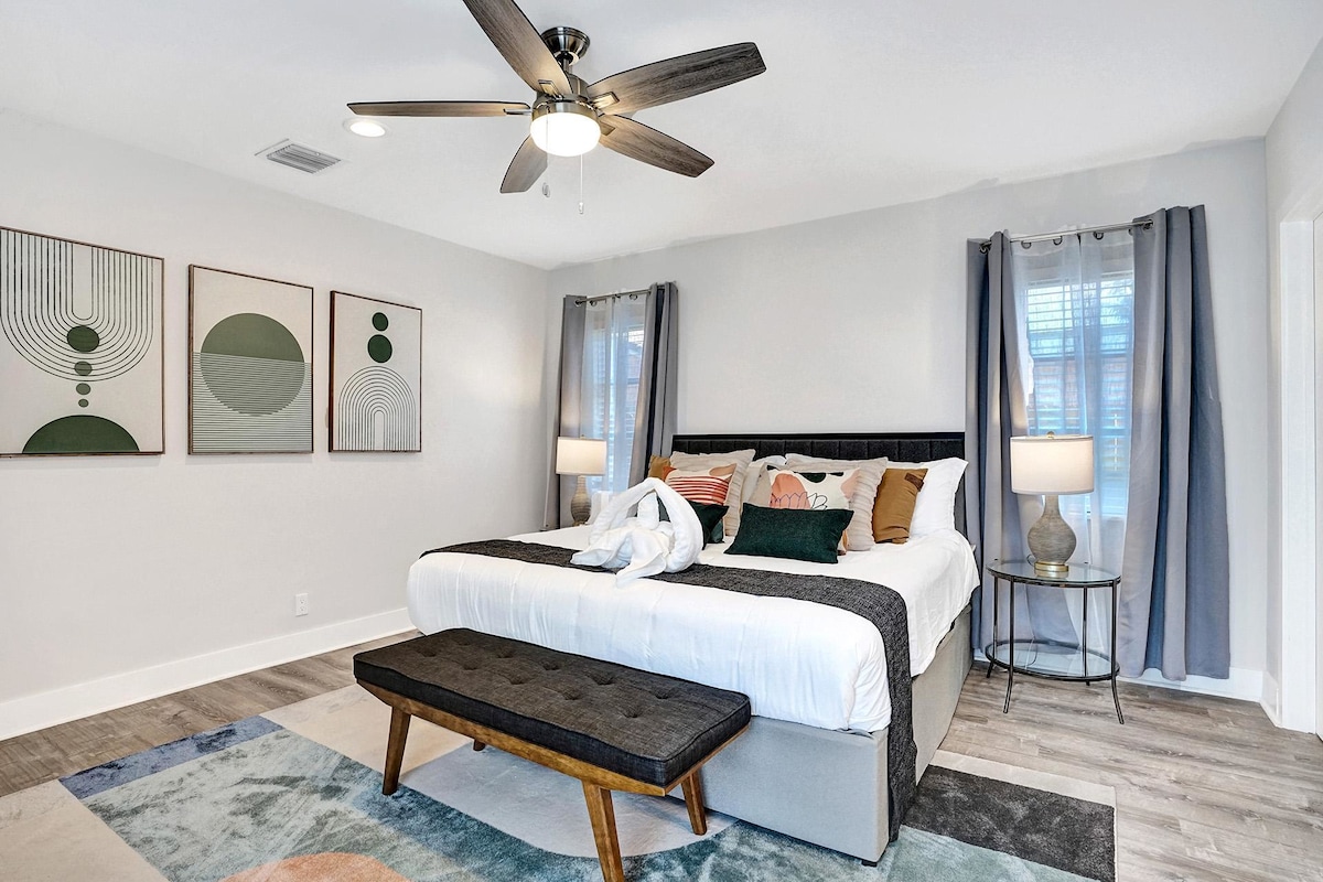 Check-in time is 4pm / Check-out time is 11am. Quiet hours 10pm-8am. No unauthorized guests permitted. No smoking inside the house ($750 fine) No pets ($250 fine) **House Rules** We have created this house rules sheet to ensure that you can fully enjoy your stay in our rental while also respecting the home and neighborhood. Following these rules will greatly help us as Vacation Rental hosts by making sure the home is taken care of during your stay. Do not hesitate to contact us if you have any questions regarding the items mentioned in this document. We ask that you treat the property as if it was your own property. Please be aware of the condition of items in the house, and if you notice anything broken when you arrive, contact us to let us know. We also ask that you watch noise levels at night, as we have a close relationship with our neighbors and do not want to cause any problems. Please no loud music or disturbances. Noise ordinances for quiet time in the city/neighborhood are at 10pm, so please respect these rules. We want to mention that first so you are aware. Children are welcome here! however - please keep your children safe. Home is not childproofed. 1. Check-in /Check-Out: Check-in time is 4:00 pm. Check-out time is 11 am. Unless otherwise authorized by the management company. We MUST have 24-hour notice for extensions of stay or you will be expected to vacate at the 11:00 am checkout time. All areas of the property are for guest use unless locked and designated as Designedvr employees only. Not all garages are accessible or available for your use. 2. Guest Interaction: We love to meet and greet all guests. However, in the event that this is not possible we also offer self-check-in with a door code. We have the right to ask for ID, the credit card used for booking, or other forms of proof of identity and payment. We may also ask guests to present ID. Person traveling with guest will not be permitted on property before booking guest has arrived and is confirmed with ID. 3. Guest Access - All areas of the property are for guest use unless locked and designated as Designedvr employees only. Not all garages are accessible or available for your use. 4. Maximum Occupancy: The maximum number of guests is limited to the number indicated in the listing. It is very important that the maximum occupancy rule is not violated as this will be considered a breach of the reservation rules and will result in immediate cancellation of the booking. 5. Unauthorized Guests - Although we do not mind if you invite a friend or 2 over to visit, please do not have extra unauthorized guests stay the night or for extended periods of time. We do not allow unauthorized guests to sleep here. Please do not allow extra guests to sleep at the house unless previously agreed upon when you booked the rental. All overnight guests must be listed with the booking and any guests over 10 people limit incur a 50$ per night charge. 6. Parties or Events: We do not allow parties, loud gatherings or events of any sort to be held in the property. Only authorized guests are to be in the house and around the pool area. Music must be kept to a non-disturbing level. NO BIG EVENTS OR PARTIES! Please be sure that extra guests leave by 12am. We greatly appreciate your compliance on this as we do not want any issues with our neighbors or the city. Please understand that any reports or evidence of a party or organized event taking place will be an automatic forfeiture of your entire deposit and immediate vacation of the property. 7. Pets: ABSOLUTELY NO PETS! We do not allow pets of any sort. Any evidence of pets will be an automatic forfeiture of your damage deposit ($250 fine). 8. Smoking: There is to be NO SMOKING inside the property. Smoking is allowed outside on the patio (please utilize ashtrays - do not toss butts in the patio or grass) or outside of the home. Any evidence of smoking inside the home (ie smells of smoke, ashes, burns, etc) will be an automatic forfeiture of the entire damage deposit and an additional smoke remediation fee of $750 will be charged. 9. Trash: All trash are to be bagged and put in waste bins provided. You will find trash bags under the kitchen sink. When the trash can is full, please remove the trash bag and take it to the trash bins. Please make sure all small trash cans have a bag liner before putting trash inside. 10. Inspections: Property Management has the right to inspect the premises without prior notice at any time to enforce the terms of this agreement. Should the guests violate any of the terms of this agreement, the rental period will be terminated immediately and no refunds will be given. The guests waive all rights to process if they fail to vacate the premises upon termination of the rental period. The tenants shall vacate the premises at the expiration time and date of this agreement. 11. Security Deposit: A security deposit is required to reserve the house. You will be required to submit payment using the payment link provided within 48 hrs before check-in. The deposit is in addition to the nightly rate and will be refunded in the same manner paid provided the following provisions are met: *No damage is done to the unit or its contents *All debris, rubbish, and trash are placed in trash cans and soiled dishes are placed in the dishwasher and cleaned. If the house is left excessively dirty and there is excessive trash left in the house, there will be an additional cleaning fee deducted from the deposit for the extra cleaning time. The guests will be notified immediately. *No linens are missing, damaged, or excessively stained *The Occupancy limit of the house is not exceeded at any time unless approved in writing in advance *There are no police enforcement actions by the City or Homeowners /and items 4,5,6,7,8 and 9 are adhered to and there are no violations of house rules as posted in the house. 12. Check-out: Check-out time is at 11:00am unless a late check-out is purchased via the