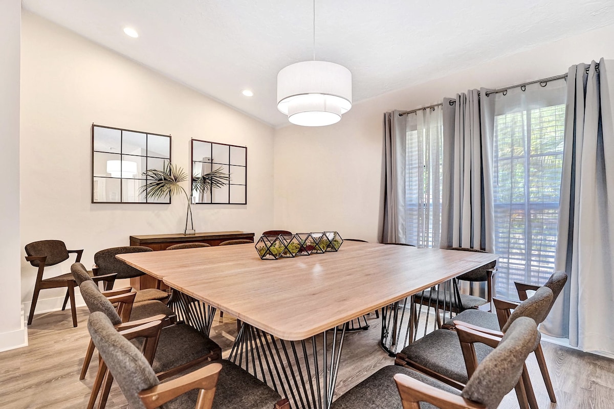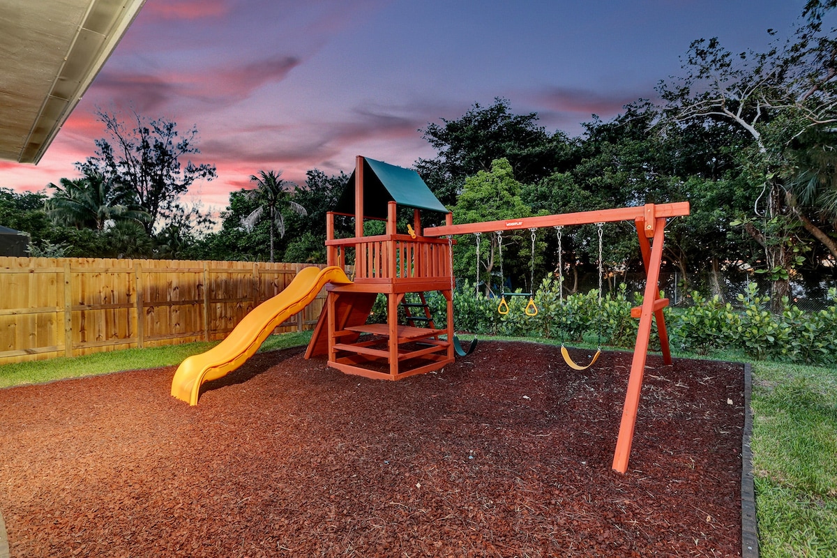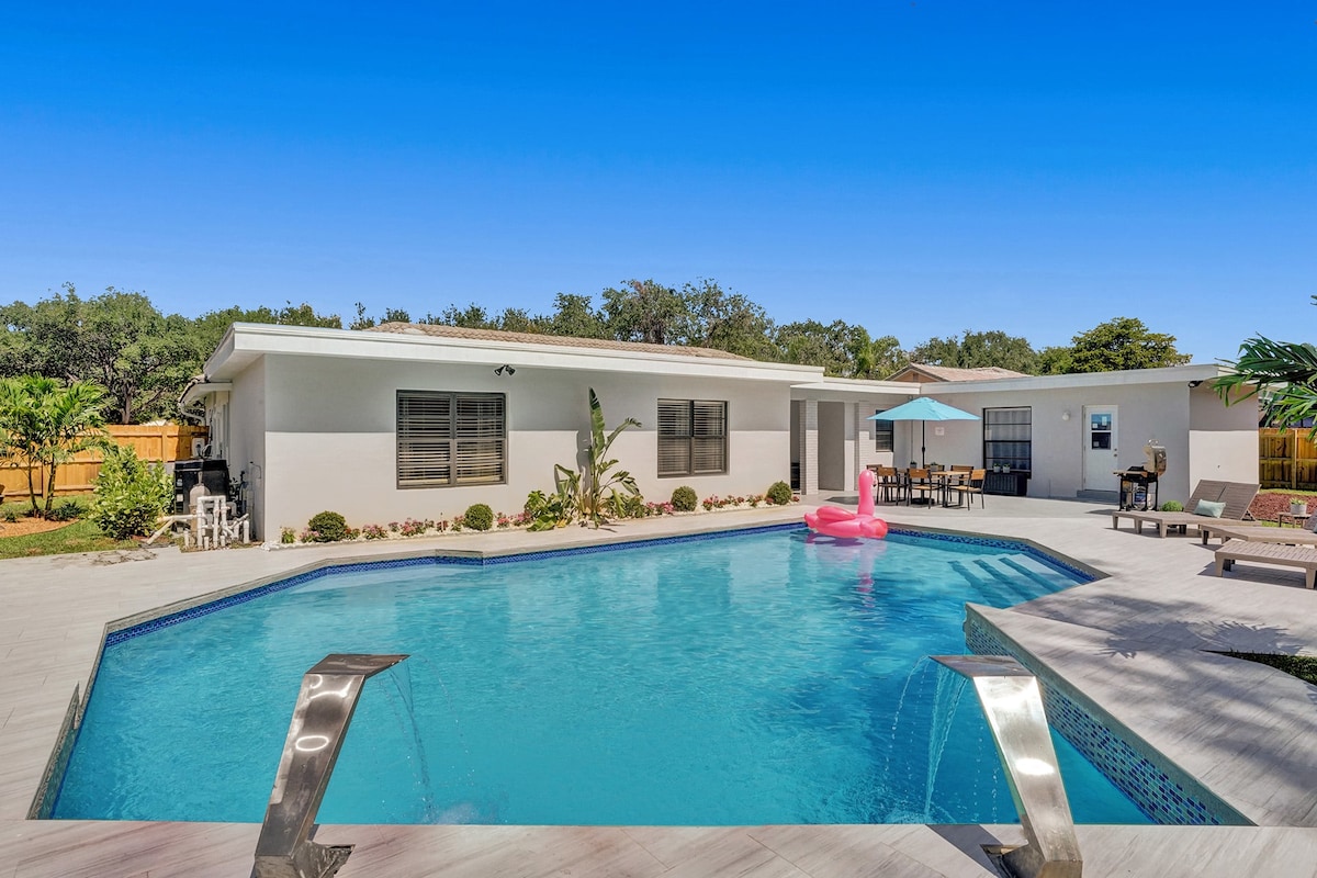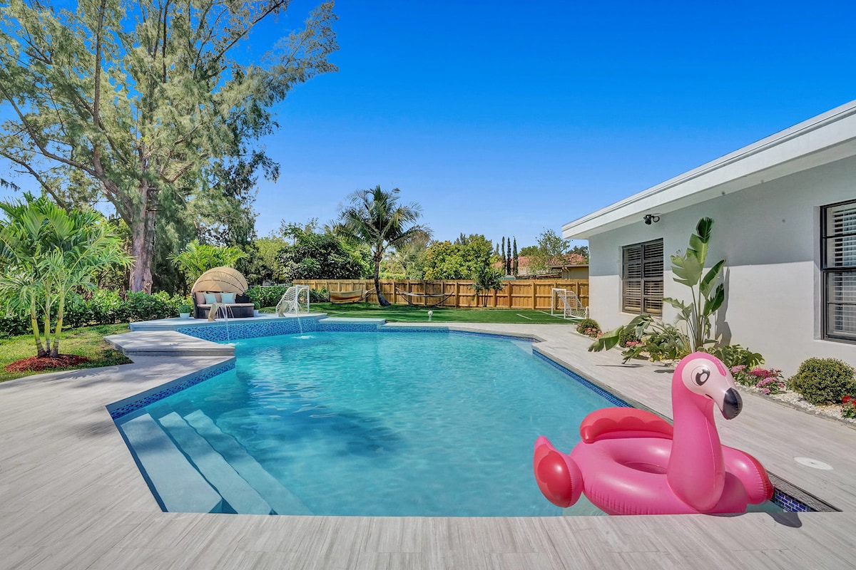 This unique home is newly renovated and has 7 bedrooms and 4 baths, it is the perfect choice for your next family get-together, with many memories to cherish. A large backyard with a private pool and plenty of outside seating, a mini-soccer field, and a kids' playground, are just a few to mention.