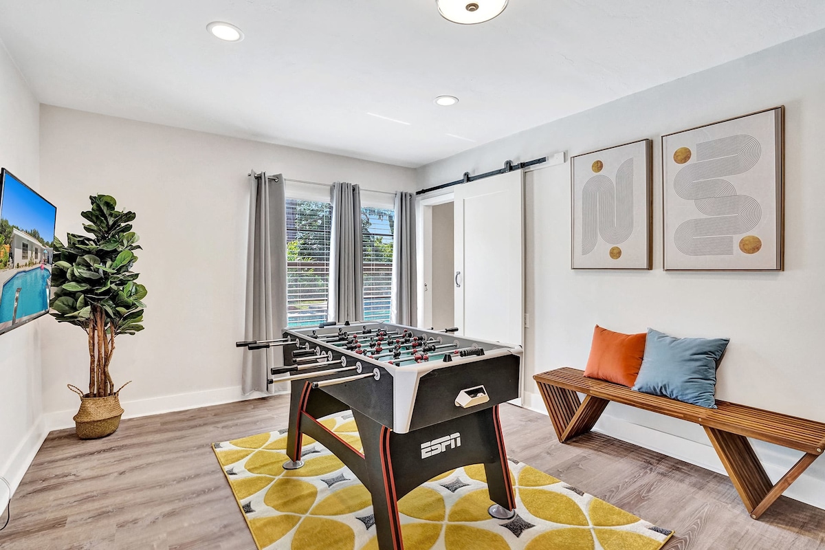 Gameroom - Located by the kitchen near the breakfast table, additional game area with a foosball TV, and a bench located near the kitchen as well.