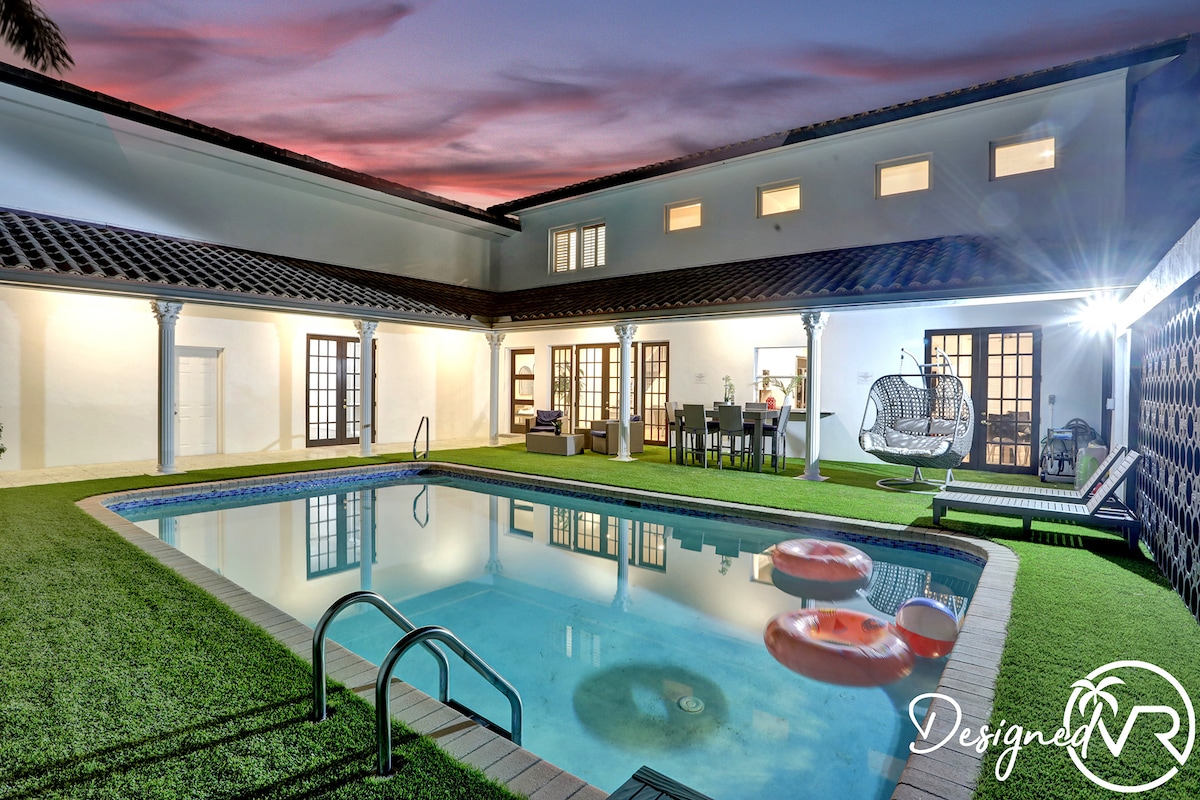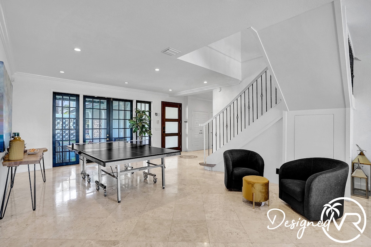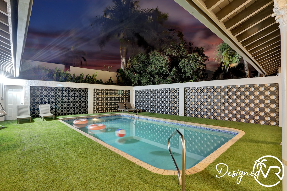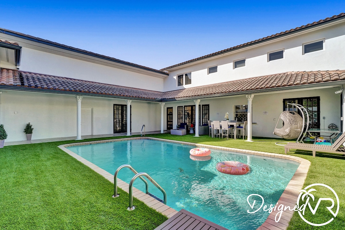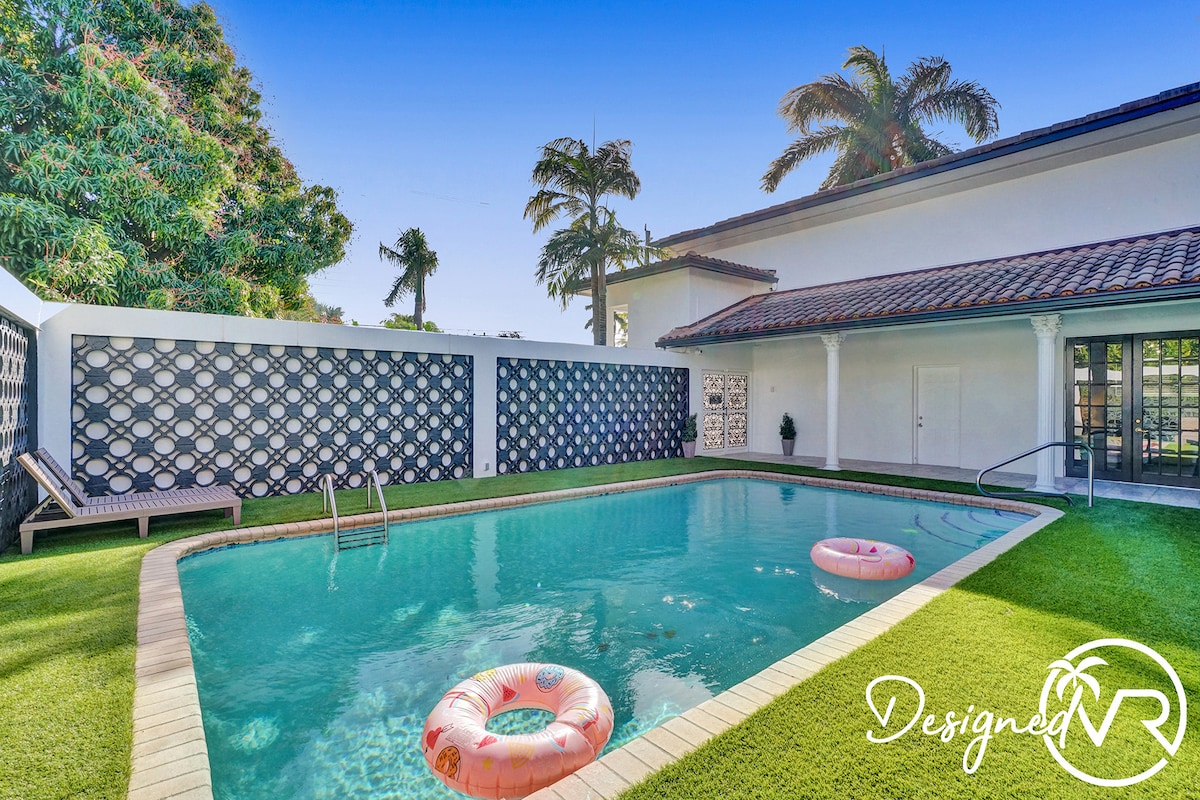 Set within a well-established, quiet, family friendly residential neighborhood, the home is part of a community where quiet hours from 10pm to 8am are required outside and in the pool area. With its waterfront setting and outdoor spaces, this home is designed for guests seeking their own space while staying close to the calm rhythms of South Florida.
