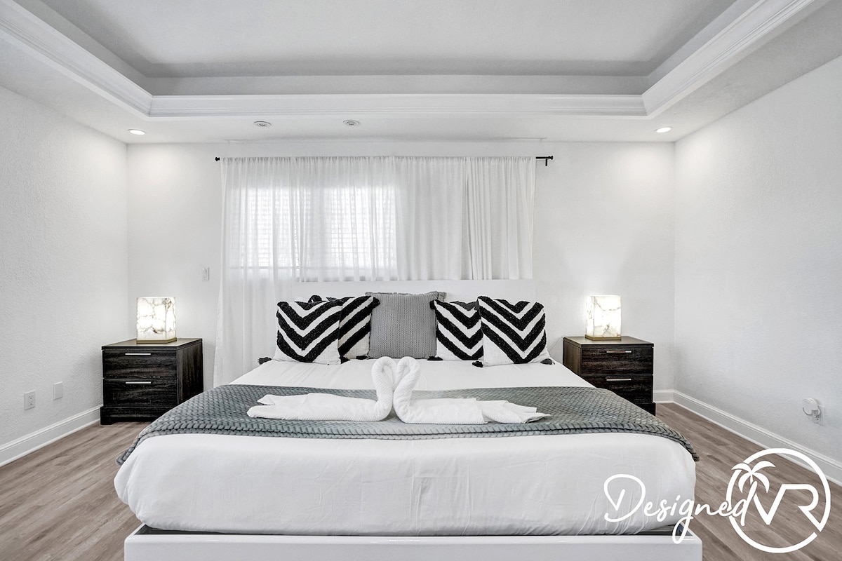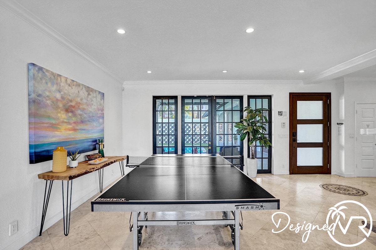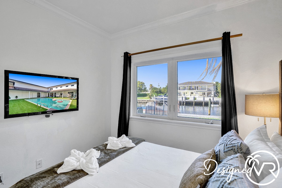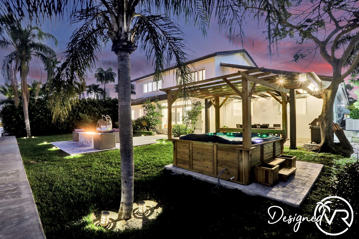 Soft morning light reflects off the waterway as you step outside, the air warm and steady in true South Florida style. Evenings drift in gently here, inviting you to settle by the fire pit as the water glows with the last light of day. Between the pool views, open-concept spaces, and easy access to the outdoors, this home offers room for your whole group to unwind at their own pace.Sleeping arrangements