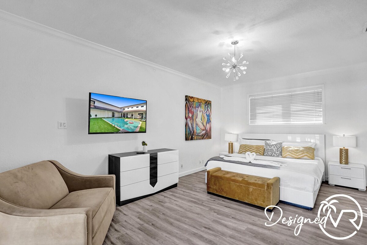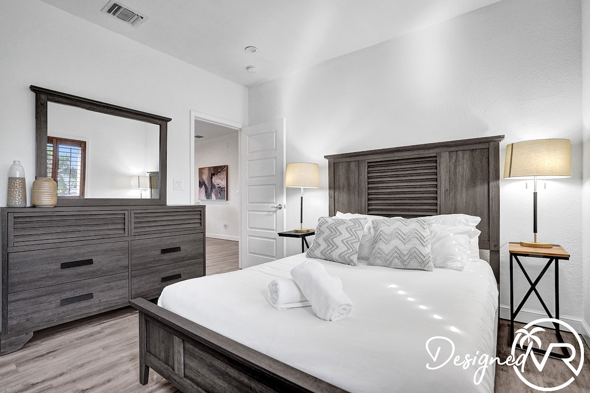 Check-in time is 4pm / Check-out time is 11am. Quiet hours 10pm-8am. No unauthorized guests permitted. No smoking inside the house ($750 fine) No pets ($250 fine) **House Rules** We have created this house rules sheet to ensure that you can fully enjoy your stay in our Airbnb rental while also respecting the home and neighborhood. Following these rules will greatly help us as Vacation Rental hosts by making sure the home is taken care of during your stay. Do not hesitate to contact us if you have any questions regarding the items mentioned in this document. We ask that you treat the property as if it was your own property. Please be aware of the condition of items in the house, and if you notice anything broken when you arrive, contact us to let us know. We also ask that you watch noise levels at night, as we have a close relationship with our neighbors and do not want to cause any problems. Please no loud music or disturbances. Noise ordinances for quiet time in the city/neighborhood are at 10pm, so please respect these rules. We want to mention that first so you are aware. Children are welcome here! however - please keep your children safe. Home is not childproofed. 1. Check-in /Check-Out: Check-in time is 4:00 pm. Check-out time is 11 am. Unless otherwise authorized by the management company. We MUST have 24-hour notice for extensions of stay or you will be expected to vacate at the 11:00 am checkout time. All areas of the property are for guest use unless locked and designated as Designedvr employees only. Not all garages are accessible or available for your use. 2. Guest Interaction: We love to meet and greet all guests. However, in the event that this is not possible we also offer self-check-in with a door code. We have the right to ask for ID, the credit card used for booking, or other forms of proof of identity and payment. We may also ask guests to present ID. Person traveling with guest will not be permitted on property before booking guest has arrived and is confirmed with ID. 3. Guest Access - All areas of the property are for guest use unless locked and designated as Designedvr employees only. Not all garages are accessible or available for your use. 4. Maximum Occupancy: The maximum number of guests is limited to the number indicated in the listing. It is very important that the maximum occupancy rule is not violated as this will be considered a breach of the reservation rules and will result in immediate cancellation of the booking. 5. Unauthorized Guests - Although we do not mind if you invite a friend or 2 over to visit, please do not have extra unauthorized guests stay the night or for extended periods of time. We do not allow unauthorized guests to sleep here. Please do not allow extra guests to sleep at the house unless previously agreed upon when you booked the rental. All overnight guests must be listed with the booking and any guests over 10 people limit incur a 50$ per night charge. 6. Parties or Events: We do not allow parties, loud gatherings or events of any sort to be held in the property. Only authorized guests are to be in the house and around the pool area. Music must be kept to a non-disturbing level. NO BIG EVENTS OR PARTIES! Please be sure that extra guests leave by 12am. We greatly appreciate your compliance on this as we do not want any issues with our neighbors or the city. Please understand that any reports or evidence of a party or organized event taking place will be an automatic forfeiture of your entire deposit and immediate vacation of the property. 7. Pets: ABSOLUTELY NO PETS! We do not allow pets of any sort. Any evidence of pets will be an automatic forfeiture of your damage deposit ($250 fine). 8. Smoking: There is to be NO SMOKING inside the property. Smoking is allowed outside on the patio (please utilize ashtrays - do not toss butts in the patio or grass) or outside of the home. Any evidence of smoking inside the home (ie smells of smoke, ashes, burns, etc) will be an automatic forfeiture of the entire damage deposit and an additional smoke remediation fee of $750 will be charged. 9. Trash: All trash are to be bagged and put in waste bins provided. You will find trash bags under the kitchen sink. When the trash can is full, please remove the trash bag and take it to the trash bins. Please make sure all small trash cans have a bag liner before putting trash inside. 10. Inspections: Property Management has the right to inspect the premises without prior notice at any time to enforce the terms of this agreement. Should the guests violate any of the terms of this agreement, the rental period will be terminated immediately and no refunds will be given. The guests waive all rights to process if they fail to vacate the premises upon termination of the rental period. The tenants shall vacate the premises at the expiration time and date of this agreement. 11. Security Deposit: A security deposit is required to reserve the house. You will be required to submit payment using the payment link provided within 48 hrs before check-in. The deposit is in addition to the nightly rate and will be refunded in the same manner paid provided the following provisions are met: *No damage is done to the unit or its contents *All debris, rubbish, and trash are placed in trash cans and soiled dishes are placed in the dishwasher and cleaned. If the house is left excessively dirty and there is excessive trash left in the house, there will be an additional cleaning fee deducted from the deposit for the extra cleaning time. The guests will be notified immediately. *No linens are missing, damaged, or excessively stained *The Occupancy limit of the house is not exceeded at any time unless approved in writing in advance *There are no police enforcement actions by the City or Homeowners /and items 4,5,6,7,8 and 9 are adhered to and there are no violations of house rules as posted in the house. 12. Check-out: Check-out time is at 11:00am unless a late check-out is purchased 