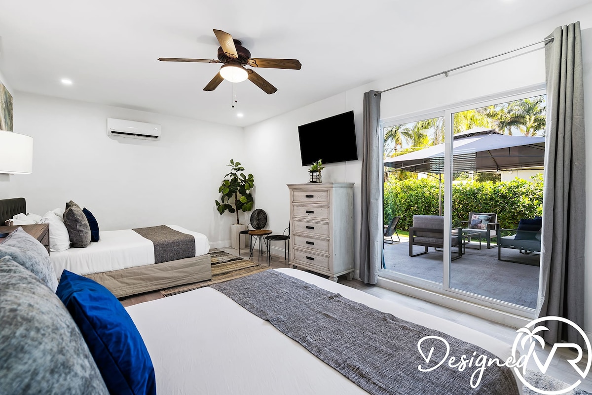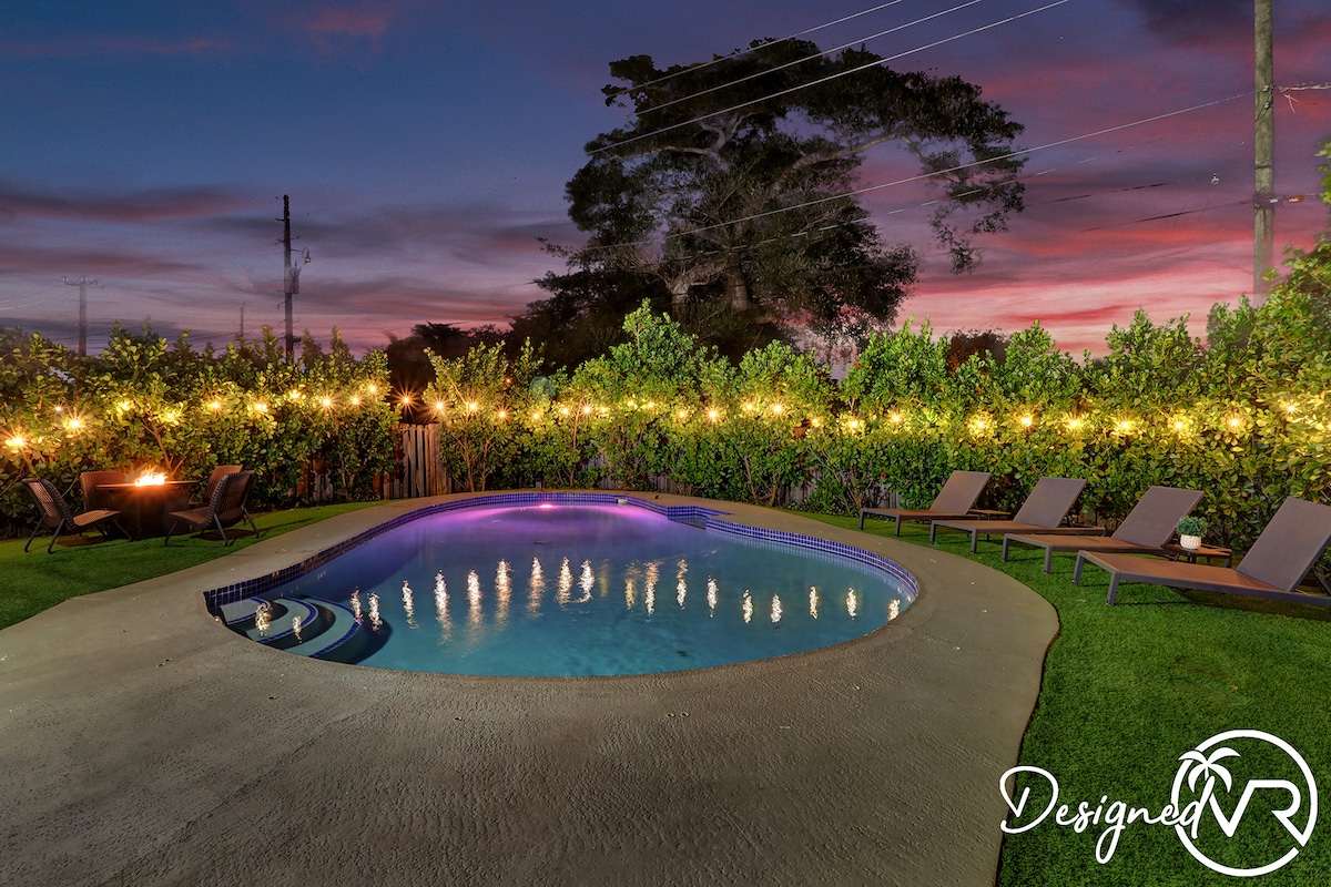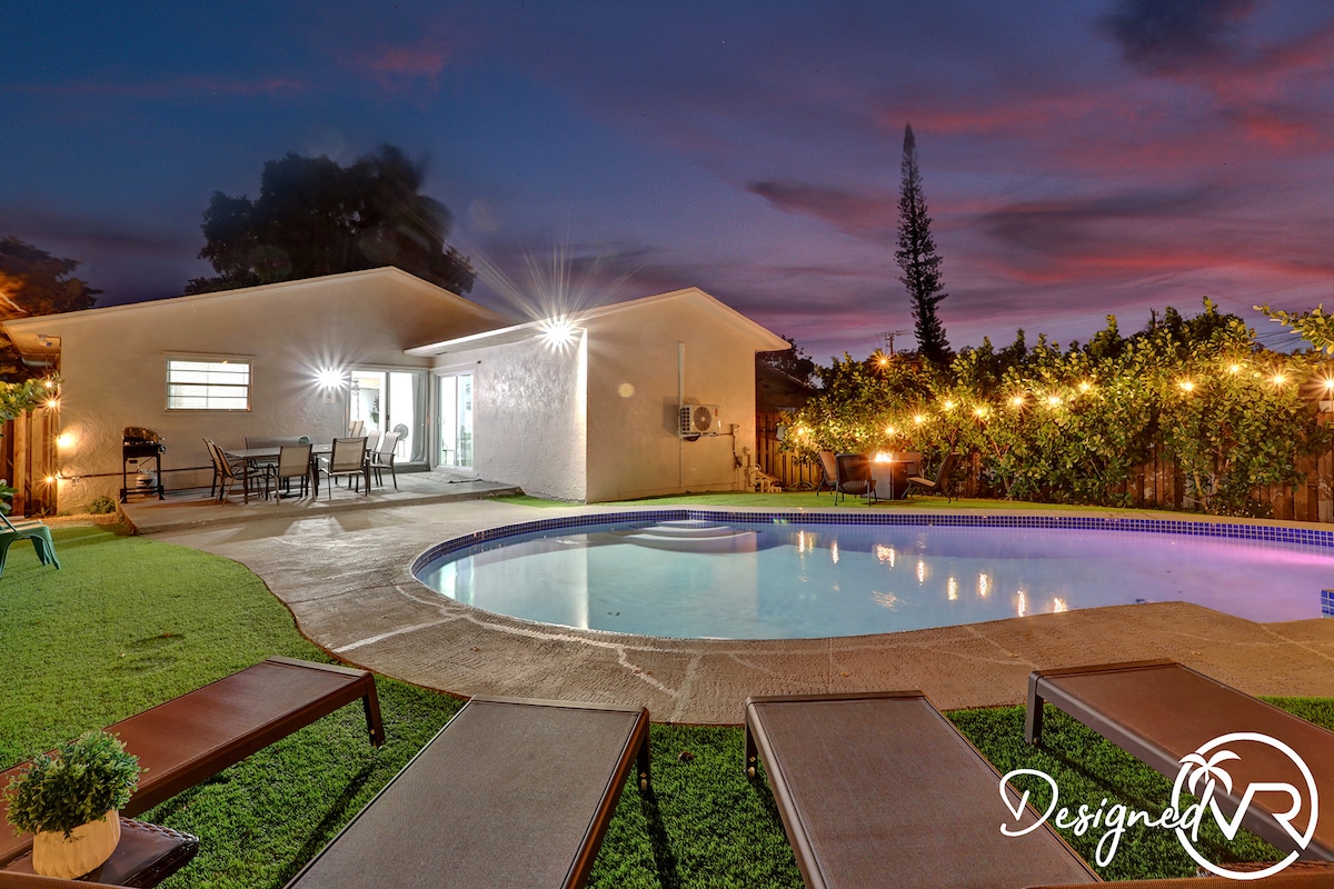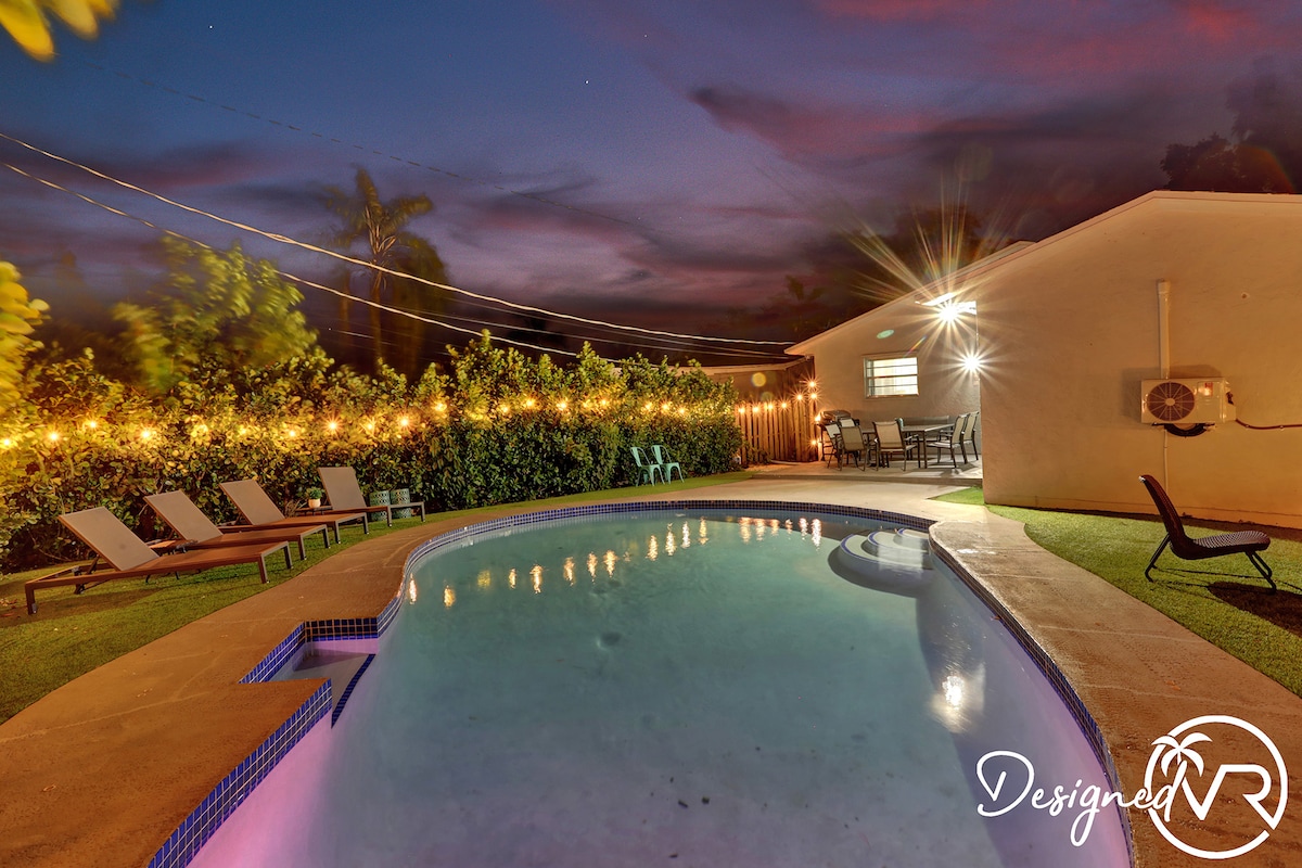Soft coastal air drifts through the fenced backyard as you start your day beside the private swimming pool, a calm place to stretch out before heading toward the nearby shoreline. Evenings settle gently here, with space to gather under the shaded pergola or unwind by the fire pit as the sky shifts above the trees. Inside, the home offers room to settle in, move freely, and enjoy time together between outings to Hollywood Beach, Dania Point, and the surrounding attractions.Sleeping arrangements