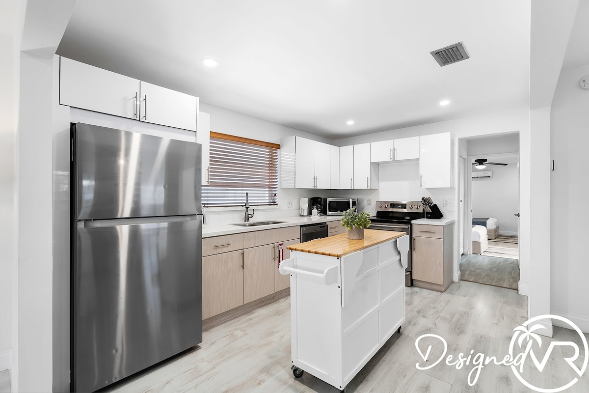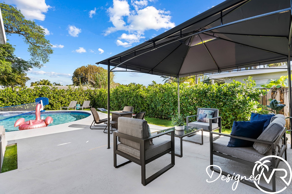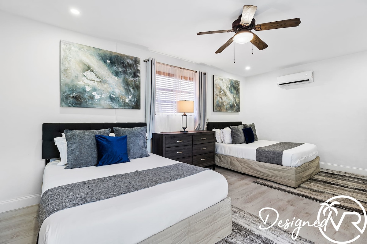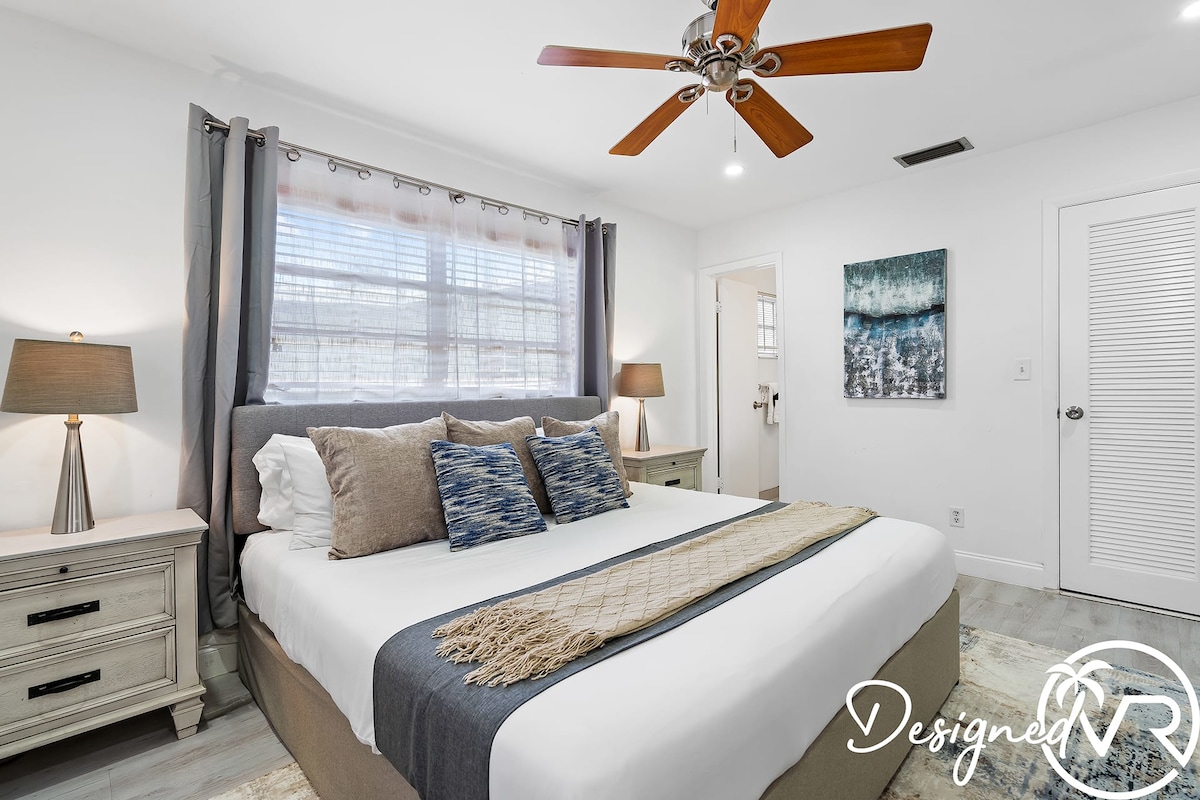 Soft coastal air drifts through the fenced backyard as you start your day beside the private swimming pool, a calm place to stretch out before heading toward the nearby shoreline. Evenings settle gently here, with space to gather under the shaded pergola or unwind by the fire pit as the sky shifts above the trees. Inside, the home offers room to settle in, move freely, and enjoy time together between outings to Hollywood Beach, Dania Point, and the surrounding attractions.Sleeping arrangements