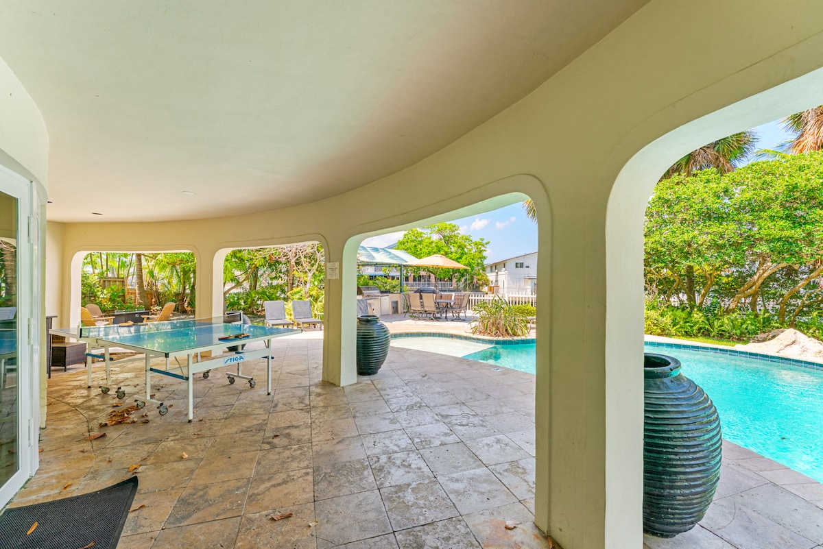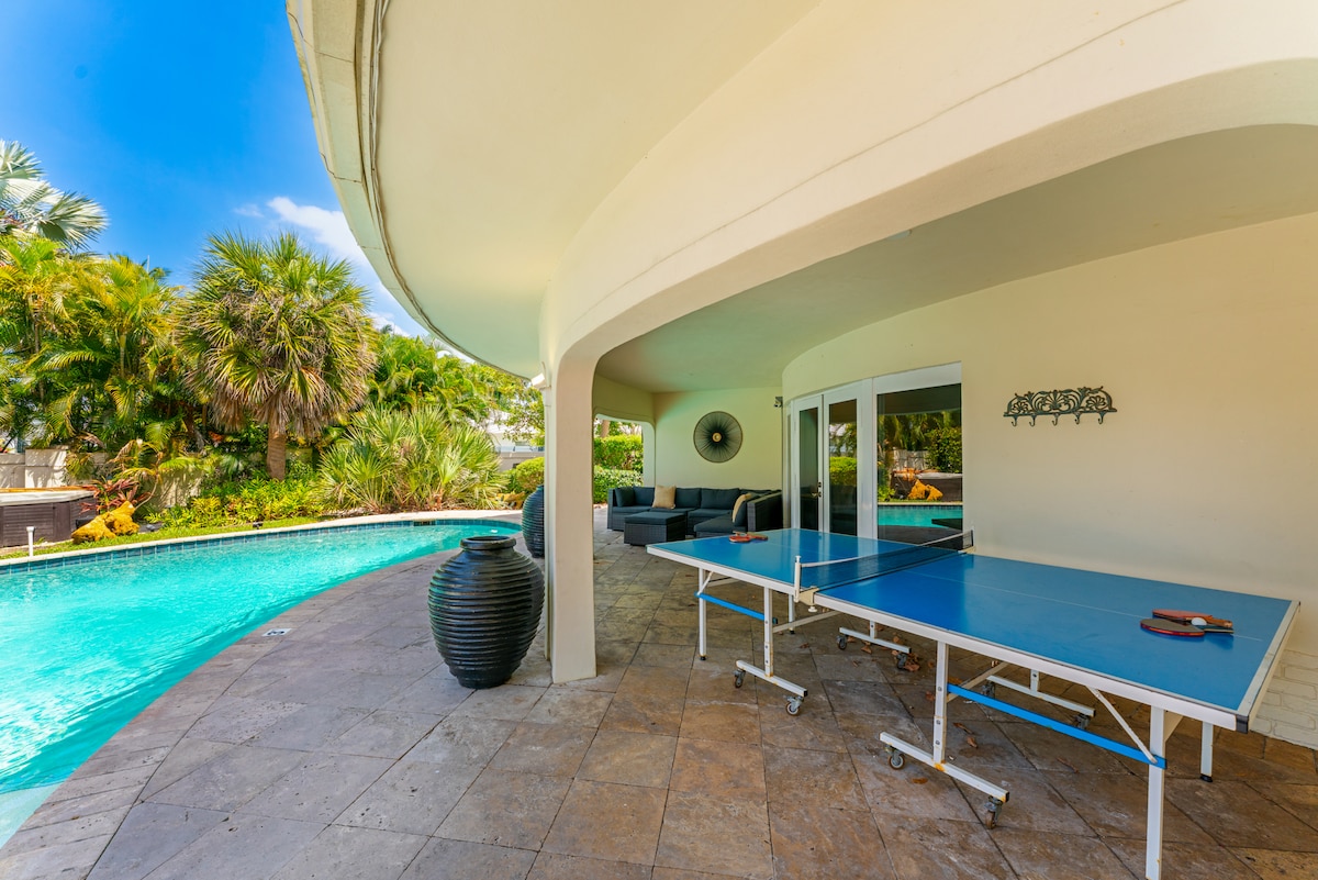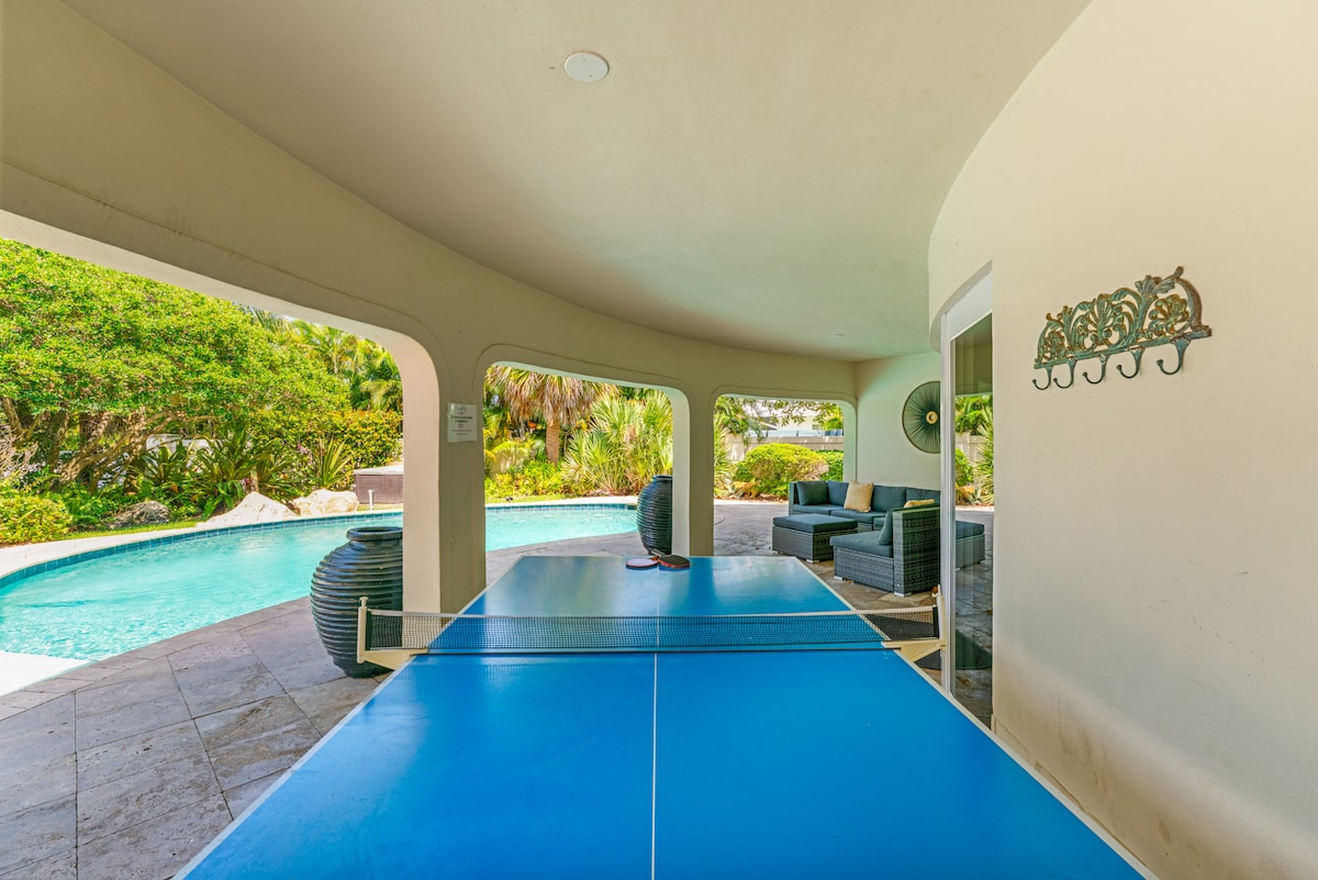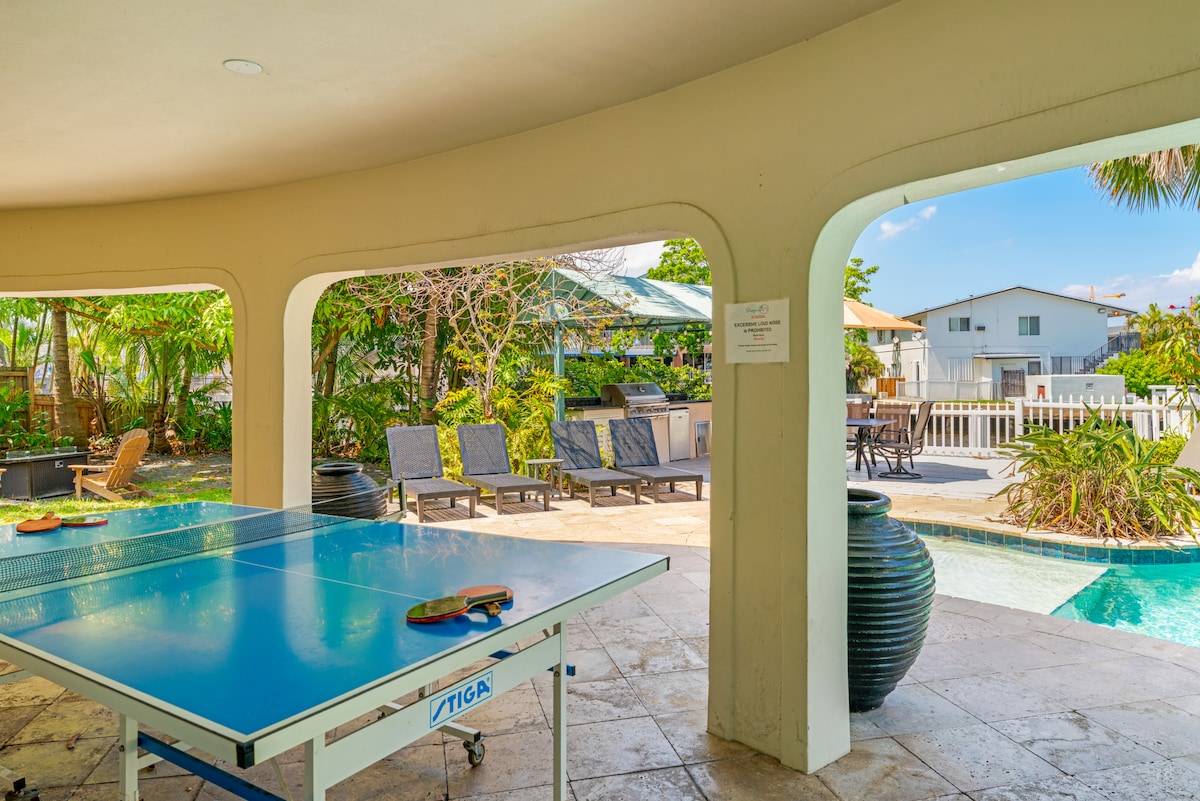* Outdoor - 10 ft. pool with kiddie area, jacuzzi, outdoor kitchen, built-in grill, mini-fridge, mini-bar, lounge chairs, little garden, dining table, 2 hammocks, fire pit, darts, an extra garage for cars.