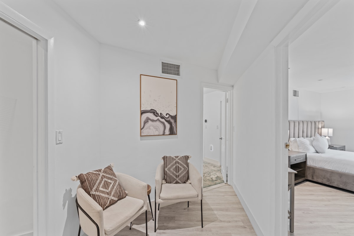 1. Bedroom with a KING SIZE BED, double closet, and connecting bathroom to room #2.