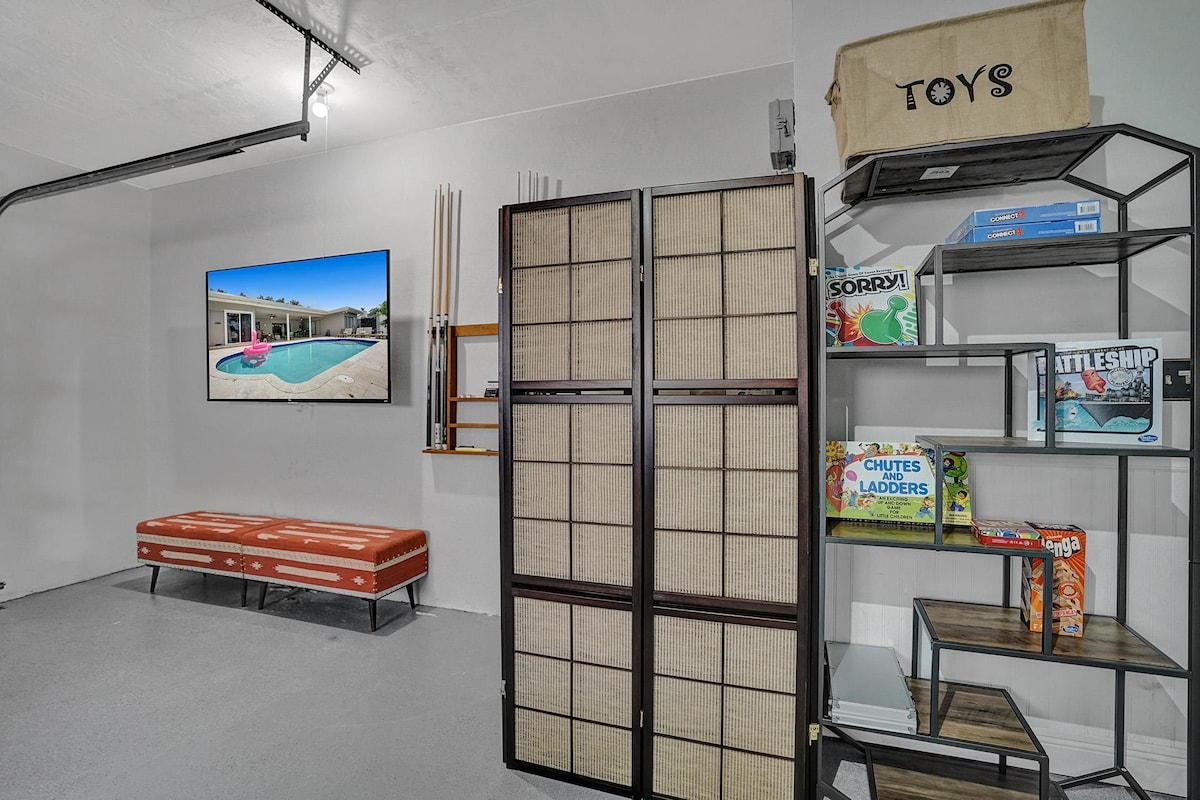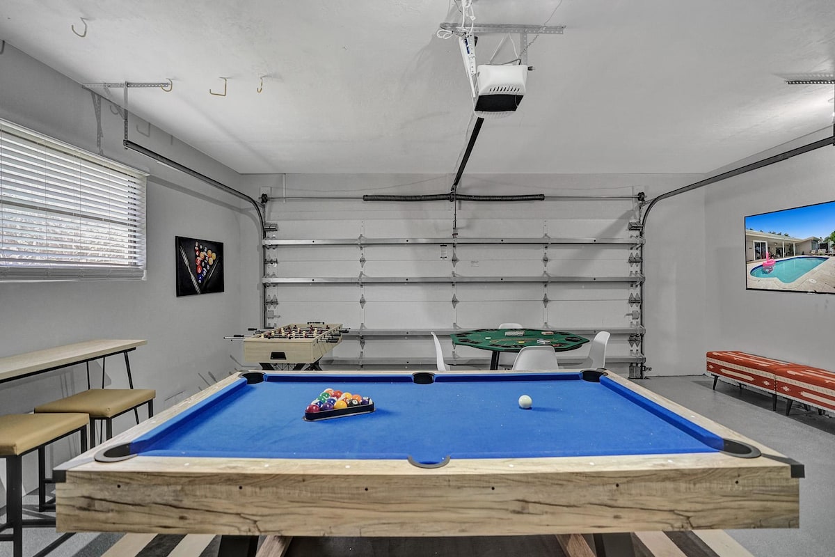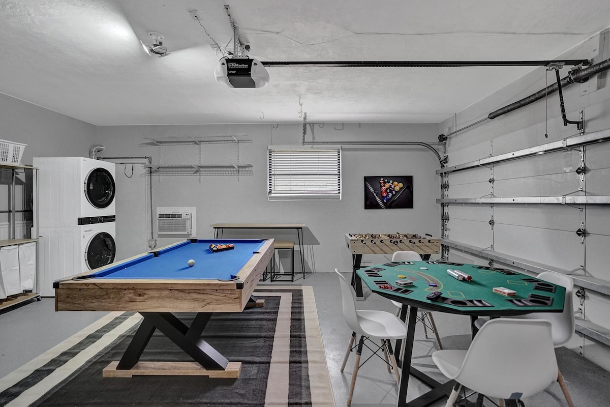 Gameroom - 75" TV, Pool table, football, full poker set with table, Multiple board games