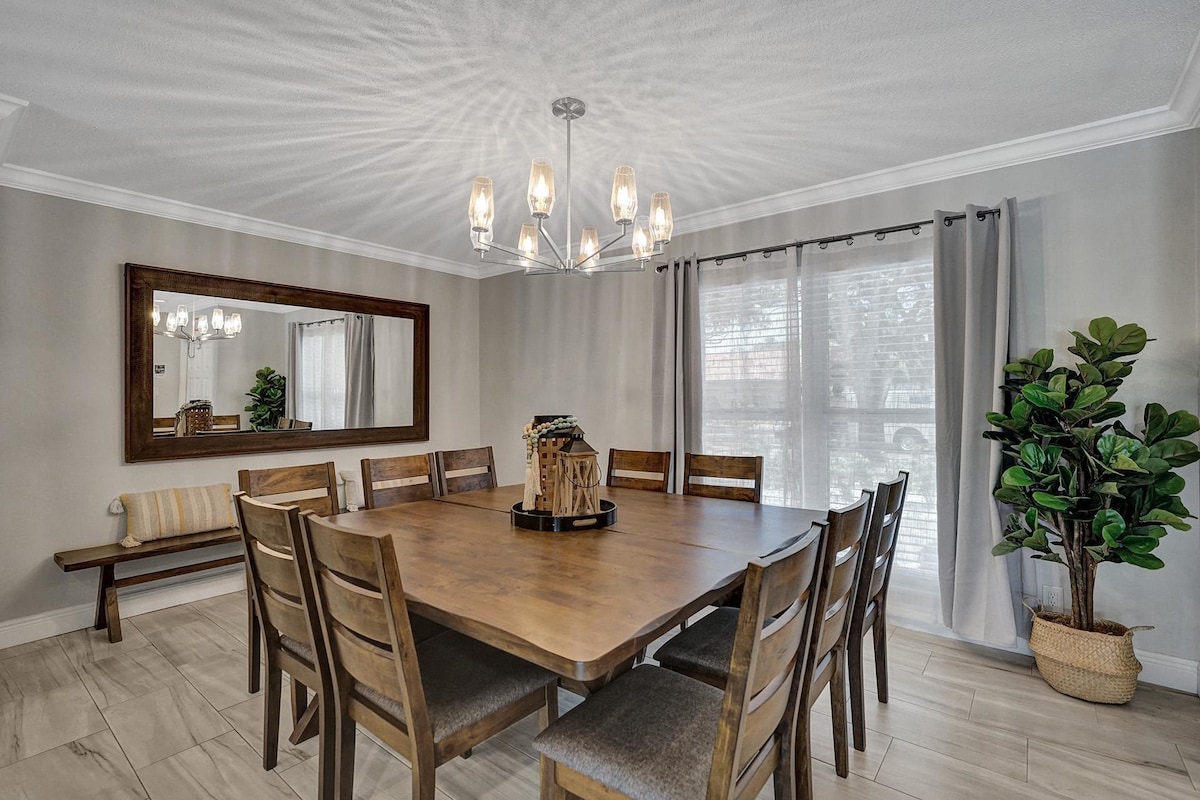 Check-in time is 4pm / Check-out time is 11am. Quiet hours 10pm-8am. No unauthorized guests permitted. No smoking inside the house ($750 fine) No pets ($250 fine) **House Rules** We have created this house rules sheet to ensure that you can fully enjoy your stay in our Airbnb rental while also respecting the home and neighborhood. Following these rules will greatly help us as Vacation Rental hosts by making sure the home is taken care of during your stay. Do not hesitate to contact us if you have any questions regarding the items mentioned in this document. We ask that you treat the property as if it was your own property. Please be aware of the condition of items in the house, and if you notice anything broken when you arrive, contact us to let us know. We also ask that you watch noise levels at night, as we have a close relationship with our neighbors and do not want to cause any problems. Please no loud music or disturbances. Noise ordinances for quiet time in the city/neighborhood are at 10pm, so please respect these rules. We want to mention that first so you are aware. Children are welcome here! however - please keep your children safe. Home is not childproofed. 1. Check-in /Check-Out: Check-in time is 4:00 pm. Check-out time is 11 am. Unless otherwise authorized by the management company. We MUST have 24-hour notice for extensions of stay or you will be expected to vacate at the 11:00 am checkout time. All areas of the property are for guest use unless locked and designated as Designedvr employees only. Not all garages are accessible or available for your use. 2. Guest Interaction: We love to meet and greet all guests. However, in the event that this is not possible we also offer self-check-in with a door code. We have the right to ask for ID, the credit card used for booking, or other forms of proof of identity and payment. We may also ask guests to present ID. Person traveling with guest will not be permitted on property before booking guest has arrived and is confirmed with ID. 3. Guest Access - All areas of the property are for guest use unless locked and designated as Designedvr employees only. Not all garages are accessible or available for your use. 4. Maximum Occupancy: The maximum number of guests is limited to the number indicated in the listing. It is very important that the maximum occupancy rule is not violated as this will be considered a breach of the reservation rules and will result in immediate cancellation of the booking. 5. Unauthorized Guests - Although we do not mind if you invite a friend or 2 over to visit, please do not have extra unauthorized guests stay the night or for extended periods of time. We do not allow unauthorized guests to sleep here. Please do not allow extra guests to sleep at the house unless previously agreed upon when you booked the rental. All overnight guests must be listed with the booking and any guests over 10 people limit incur a 50$ per night charge. 6. Parties or Events: We do not allow parties, loud gatherings or events of any sort to be held in the property. Only authorized guests are to be in the house and around the pool area. Music must be kept to a non-disturbing level. NO BIG EVENTS OR PARTIES! Please be sure that extra guests leave by 12am. We greatly appreciate your compliance on this as we do not want any issues with our neighbors or the city. Please understand that any reports or evidence of a party or organized event taking place will be an automatic forfeiture of your entire deposit and immediate vacation of the property. 7. Pets: ABSOLUTELY NO PETS! We do not allow pets of any sort. Any evidence of pets will be an automatic forfeiture of your damage deposit ($250 fine). 8. Smoking: There is to be NO SMOKING inside the property. Smoking is allowed outside on the patio (please utilize ashtrays - do not toss butts in the patio or grass) or outside of the home. Any evidence of smoking inside the home (ie smells of smoke, ashes, burns, etc) will be an automatic forfeiture of the entire damage deposit and an additional smoke remediation fee of $750 will be charged. 9. Trash: All trash are to be bagged and put in waste bins provided. You will find trash bags under the kitchen sink. When the trash can is full, please remove the trash bag and take it to the trash bins. Please make sure all small trash cans have a bag liner before putting trash inside. 10. Inspections: Property Management has the right to inspect the premises without prior notice at any time to enforce the terms of this agreement. Should the guests violate any of the terms of this agreement, the rental period will be terminated immediately and no refunds will be given. The guests waive all rights to process if they fail to vacate the premises upon termination of the rental period. The tenants shall vacate the premises at the expiration time and date of this agreement. 11. Security Deposit: A security deposit is required to reserve the house. You will be required to submit payment using the payment link provided within 48 hrs before check-in. The deposit is in addition to the nightly rate and will be refunded in the same manner paid provided the following provisions are met: *No damage is done to the unit or its contents *All debris, rubbish, and trash are placed in trash cans and soiled dishes are placed in the dishwasher and cleaned. If the house is left excessively dirty and there is excessive trash left in the house, there will be an additional cleaning fee deducted from the deposit for the extra cleaning time. The guests will be notified immediately. *No linens are missing, damaged, or excessively stained *The Occupancy limit of the house is not exceeded at any time unless approved in writing in advance *There are no police enforcement actions by the City or Homeowners /and items 4,5,6,7,8 and 9 are adhered to and there are no violations of house rules as posted in the house. 12. Check-out: Check-out time is at 11:00am unless a late check-out is purchased 