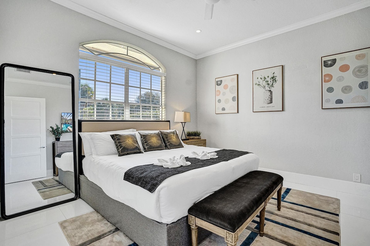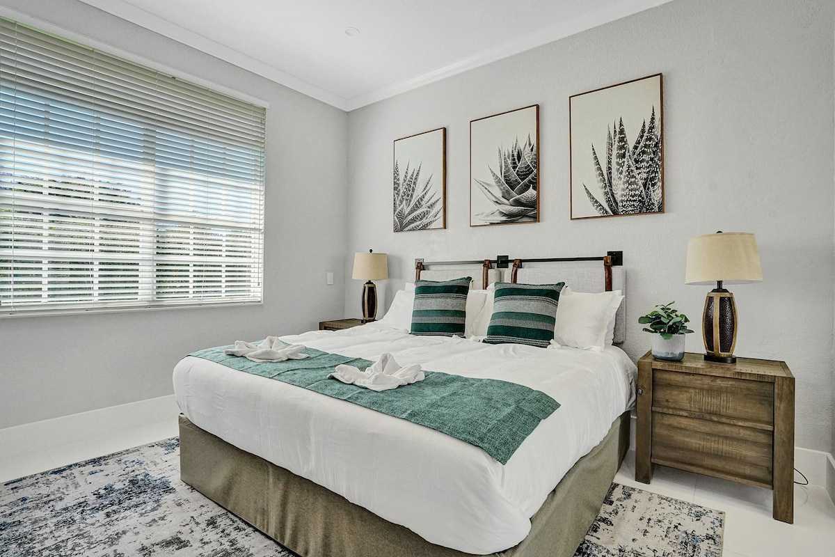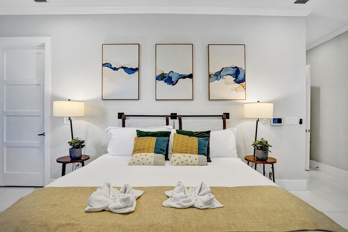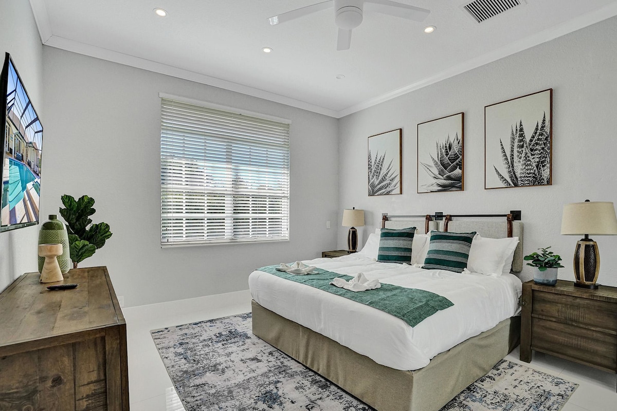 4. Bedroom with (Master) TWO QUEEN SIZE BEDS, access to pool, 65" SmartTV, spacious walk-in closet and access to a full private bathroom.