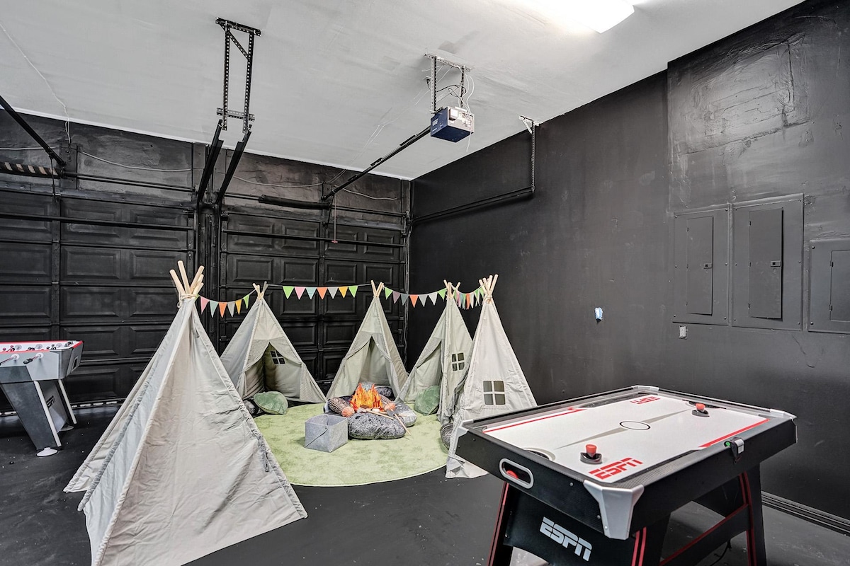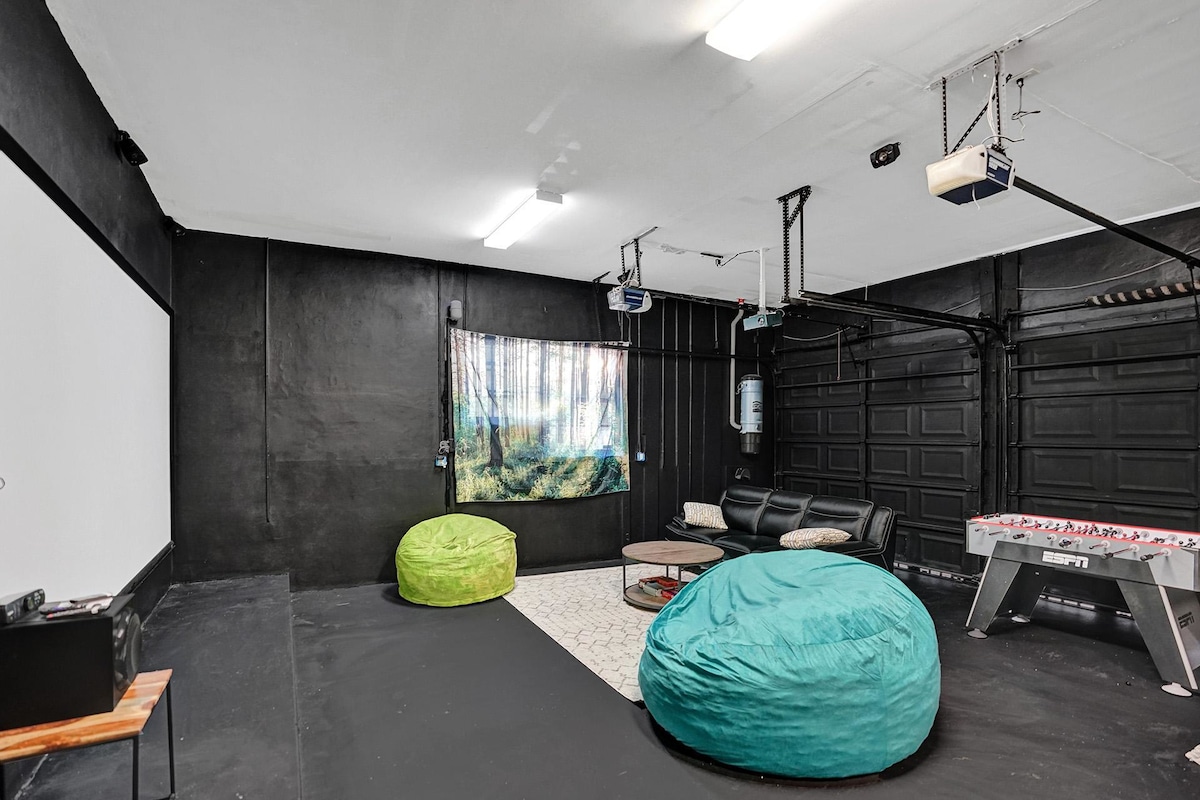Game room & theatre - Garage is converted to a game room and a theatre, it has an Air Hockey table, Ping pong table, Foosball, Dartboard, Board games, Movie Theatre with a surround sound system