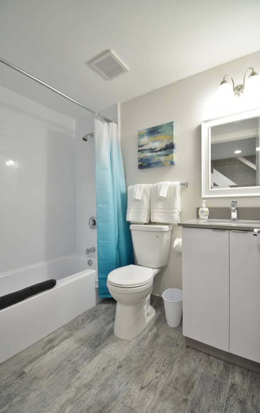 The furnishings are modern ocean-inspired hues of aqua and grey for a zen-like relaxing retreat. It has 1 bathroom with tub. We can offer kid/baby items such as cribs, toys, and high chairs at no extra cost upon availability.
