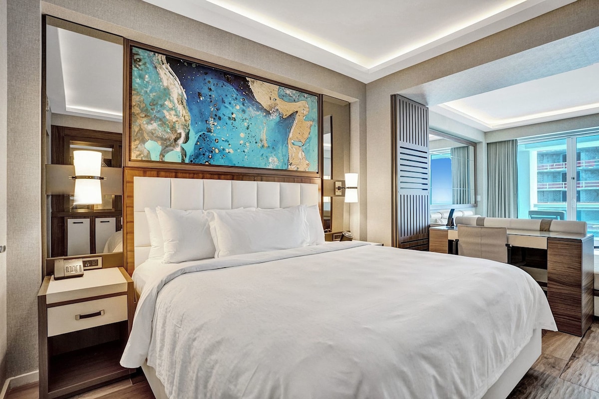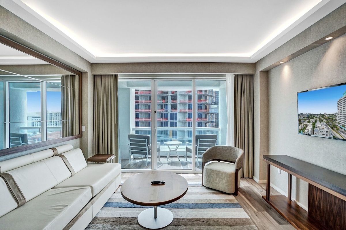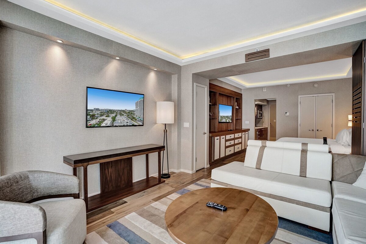 From the 9th-floor balcony, you can look out over Fort Lauderdale and the ocean as coastal breezes drift through the space. Step inside after exploring the shoreline and unwind in a studio that brings the beach atmosphere indoors with its calming, beach-inspired furnishings. Whether you begin your mornings with fresh air on the balcony or settle in after a day near the water, this condo offers a setting shaped by its views and surroundings.Sleeping arrangements