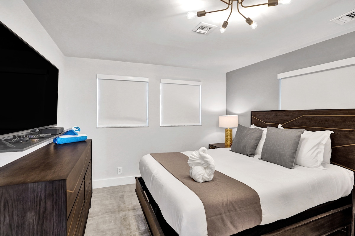 Check-in time is 4 pm / Check-out time is 11 am. Quiet hours 10 pm-8 am. No unauthorized guests are permitted. No smoking inside the unit ($750 fine) No pets ($250 fine) **House Rules** We have created this house rules sheet to ensure that you can fully enjoy your stay in our rental while also respecting the home and neighborhood. Following these rules will greatly help us as Vacation Rental hosts by making sure the home is taken care of during your stay. Do not hesitate to contact us if you have any questions regarding the items mentioned in this document. We ask that you treat the property as if it were your property. Please be aware of the condition of items in the house, and if you notice anything broken when you arrive, contact us to let us know. We also ask that you watch noise levels at night, as we have a close relationship with our neighbors and do not want to cause any problems. Please no loud music or disturbances. Noise ordinances for quiet time in the city/neighborhood are at 10 pm, so please respect these rules. We want to mention that first so you are aware. Children are welcome here! However - please keep your children safe. The home is not childproofed. 1. Check-in /Check-Out: Check-in time is 4:00 pm. Check-out time is 11 am. Unless otherwise authorized by the management company. We MUST have 24-hour notice for extensions of stay or you will be expected to vacate at the 11:00 am checkout time. All areas of the property are for guest use unless locked and designated as Designedvr employees only. Not all garages are accessible or available for your use. 2. Guest Interaction: We love to meet and greet all guests. However, if this is not possible we also offer self-check-in with a door code. We have the right to ask for ID, the credit card used for booking or other forms of proof of identity and payment. We may also ask guests to present ID. A person traveling with a guest will not be permitted on the property before the booking guest has arrived and is confirmed with ID. 3. Guest Access - All areas of the property are for guest use unless locked and designated as Designedvr employees only. Not all garages are accessible or available for your use. 4. Maximum Occupancy: The maximum number of guests is limited to the number indicated in the listing. The maximum occupancy rule mustn't be violated as this will be considered a breach of the reservation rules and will result in immediate cancellation of the booking. 5. Unauthorized Guests - Although we do not mind if you invite a friend or 2 over to visit, please do not have extra unauthorized guests stay the night or for extended periods of time. We do not allow unauthorized guests to sleep here. Please do not allow extra guests to sleep at the house unless previously agreed upon when you booked the rental. 6. Parties or Events: We do not allow parties, loud gatherings, or events of any sort to be held in the property. Only authorized guests are to be in the house and around the pool area. Music must be kept to a non-disturbing level. NO BIG EVENTS OR PARTIES! Please be sure that extra guests leave by midnight. We greatly appreciate your compliance on this as we do not want any issues with our neighbors or the city. Please understand that any reports or evidence of a party or organized event taking place will be an automatic forfeiture of your entire deposit and immediate vacation of the property. 7. Pets: ABSOLUTELY NO PETS! We do not allow pets of any sort. Any evidence of pets will be an automatic forfeiture of your damage deposit ($250 fine). 8. Smoking: There is to be NO SMOKING inside the property. Smoking is allowed outside on the patio (please utilize ashtrays - do not toss butts in the patio or grass) or outside of the home. Any evidence of smoking inside the unit (ie smells of smoke, ashes, burns, etc) will be an automatic forfeiture of the entire damage deposit and an additional smoke remediation fee of $750 will be charged. 9. Trash: All trash is to be bagged and put in the waste bins provided. You will find trash bags under the kitchen sink. When the trash can is full, please remove the trash bag and take it to the trash bins. Please make sure all small trash cans have a bag liner before putting trash inside. 10. Inspections: Property Management has the right to inspect the premises without prior notice at any time to enforce the terms of this agreement. Should the guests violate any of the terms of this agreement, the rental period will be terminated immediately and no refunds will be given. The guests waive all rights to process if they fail to vacate the premises upon termination of the rental period. The tenants shall vacate the premises at the expiration time and date of this agreement. 11. Security Deposit: A security deposit is required to reserve the house. You will be required to submit payment using the payment link provided within 48 hrs before check-in. The deposit is in addition to the nightly rate and will be refunded in the same manner paid provided the following provisions are met: *No damage is done to the unit or its contents *All debris, rubbish, and trash are placed in trash cans, and soiled dishes are placed in the dishwasher and cleaned. If the house is left excessively dirty and there is excessive trash left in the house, there will be an additional cleaning fee deducted from the deposit for the extra cleaning time. The guests will be notified immediately. *No linens are missing, damaged, or excessively stained *The Occupancy limit of the house is not exceeded at any time unless approved in writing in advance *There are no police enforcement actions by the City or Homeowners /and items 4,5,6,7,8 and 9 are adhered to and there are no violations of house rules as posted in the house. 12. Check-out: Check-out time is at 11:00 am unless a late check-out is purchased via the Tourist Portal (upon availability). Checking out by this time ensures that we have enough time to clean the place and get it 