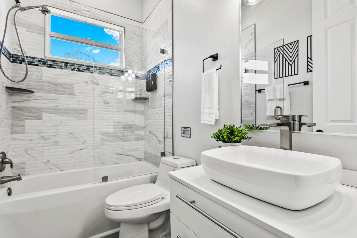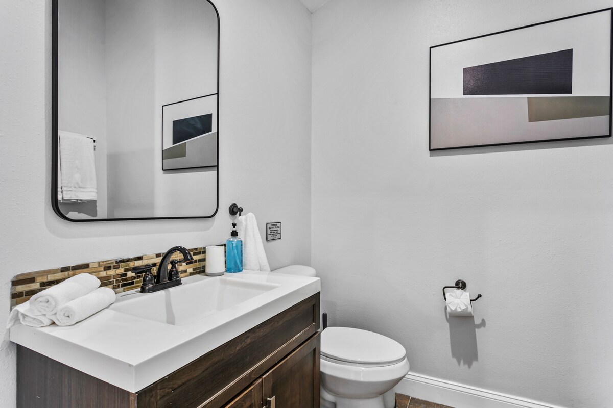 The home offers four modern bathrooms, each stocked with fresh towels and essential toiletries. With multiple bathrooms, getting ready in the morning is a breeze, ensuring that everyone has plenty of space and privacy.