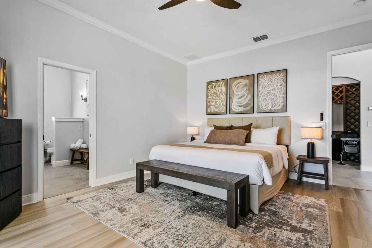 With seven thoughtfully decorated bedrooms, everyone will have their own comfortable retreat. Each room is designed with relaxation in mind, featuring premium bedding, stylish decor, and plenty of storage space. Whether you’re traveling with family or friends, you’ll find the perfect sleeping arrangement for your needs.