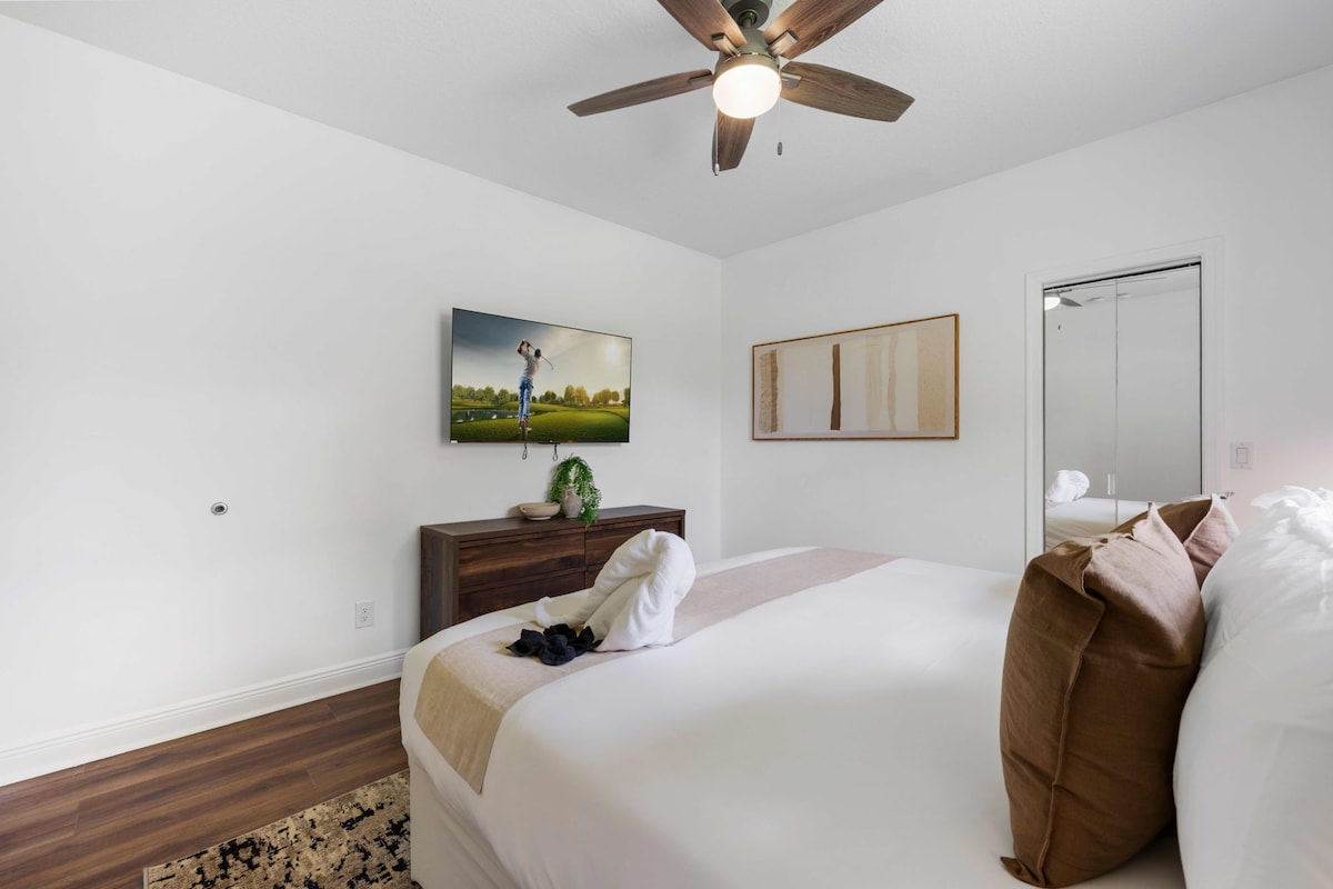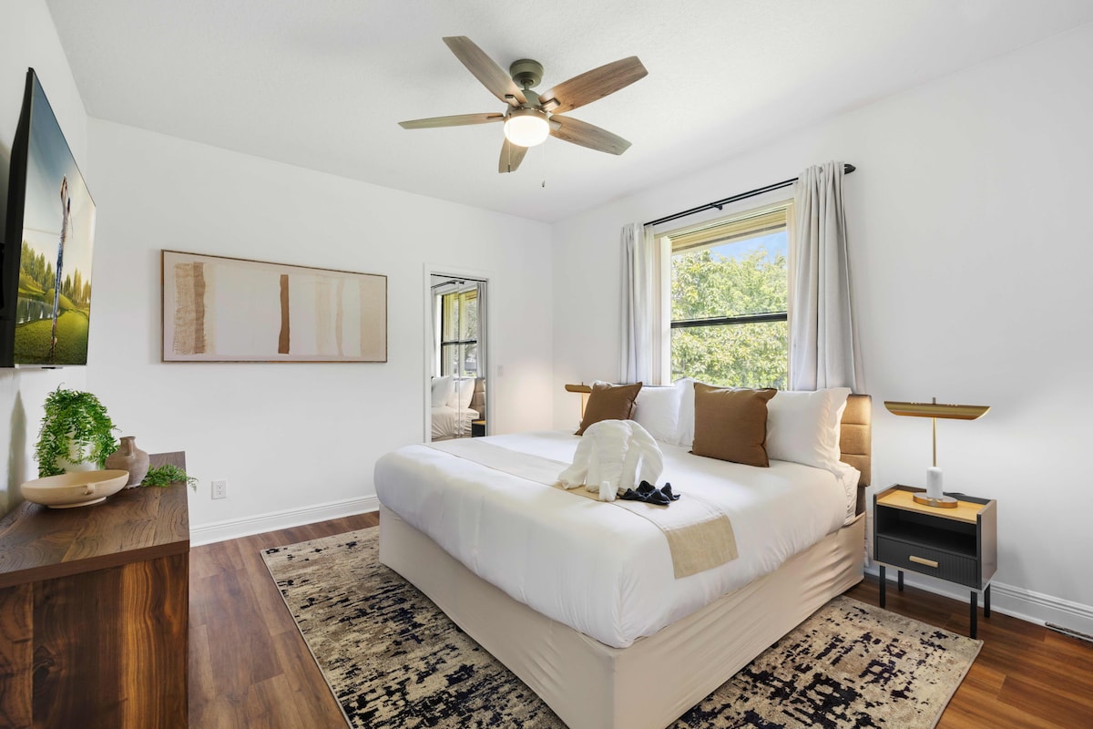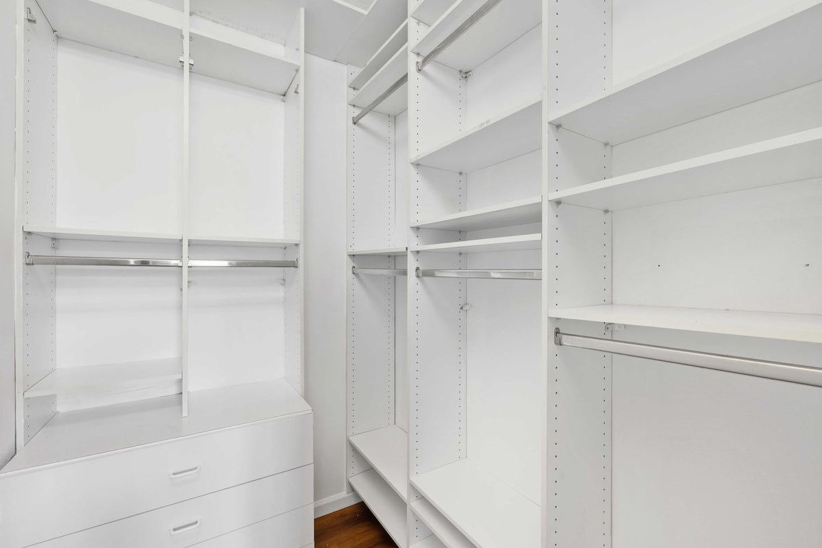 Bedroom 1 - KING-SIZED BED (Master), TV, Dresser, Hangers, Full Closet