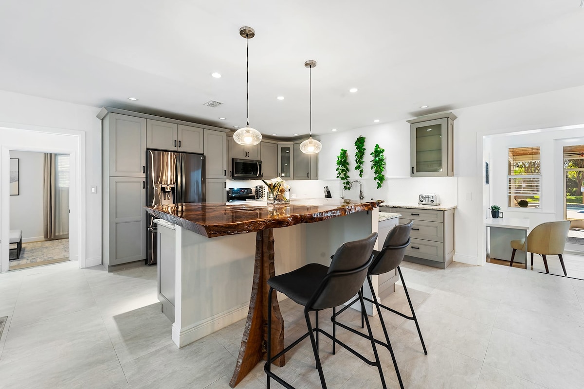 I truly enjoyed my stay here. This home made the trip very memorable from the beautiful decor, to the outside amenities that made us feel right at home. The home is very spacious than I expected, and the greenery around the home, makes you feel like you're in a different country! so breathtaking! We did see a few lizards as well! It was super cool to see! This property is only 15mins or less from Las Olas beach, and only about 30-40mins away from Miami south beach (without traffic lol). We would definitely stay here again!