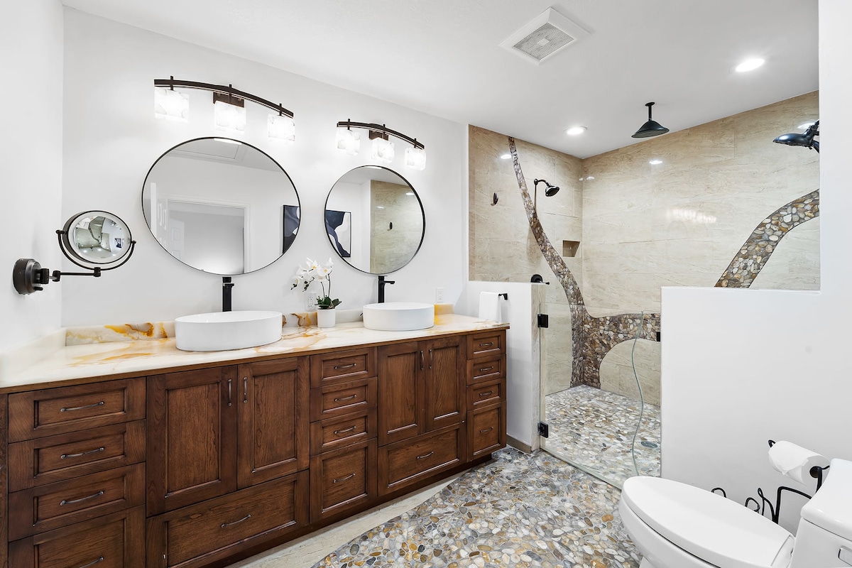 Please note - all door codes, information, instructional videos for amenities, and Wifi info will be sent via a LINK. Check your message inbox in the booking site message forum. Guests have access to all homes and backyards except for any locked doors marked "DesignedVR Staff only".Other things to note