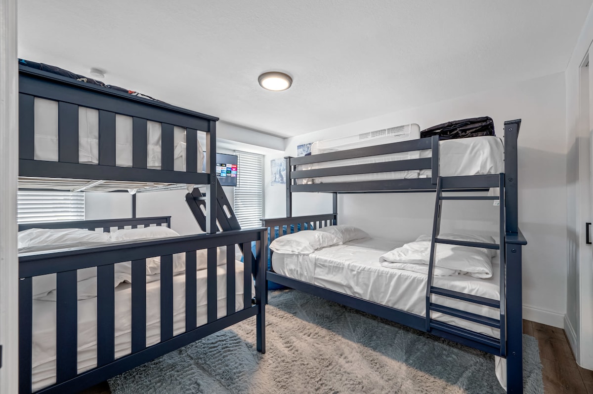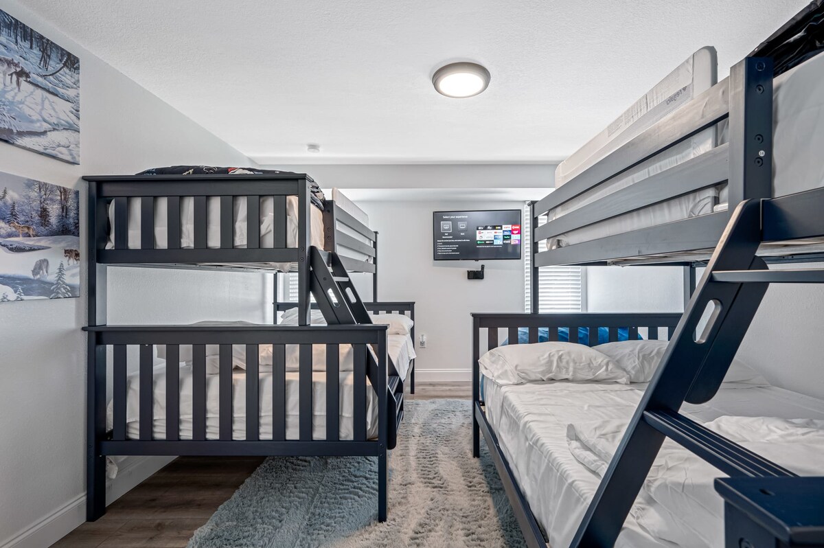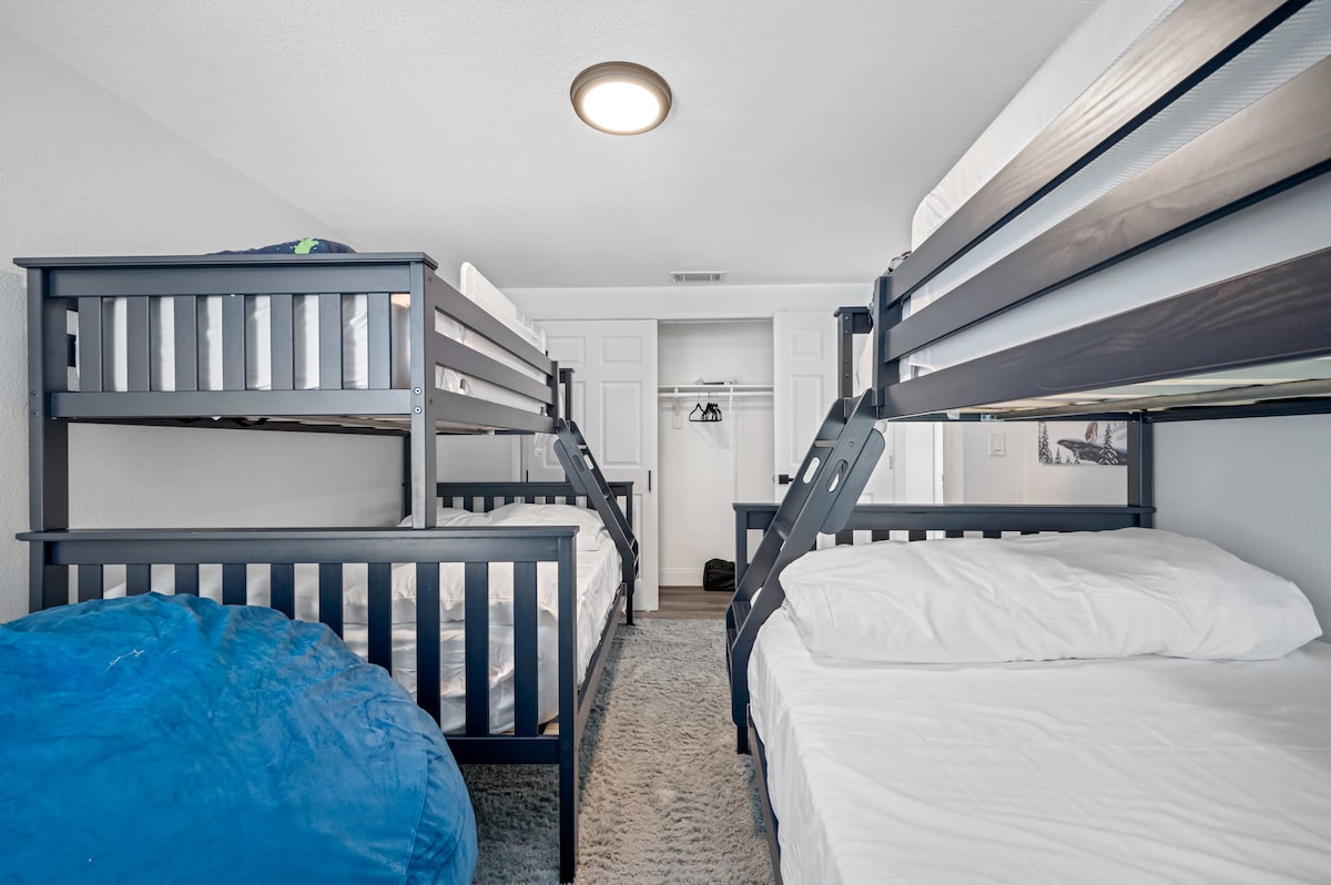 Bedroom 4 - a kids room, 2 TWIN OVER FULL BUNK BEDS with a 42” TV, and a bean bag with a closet.