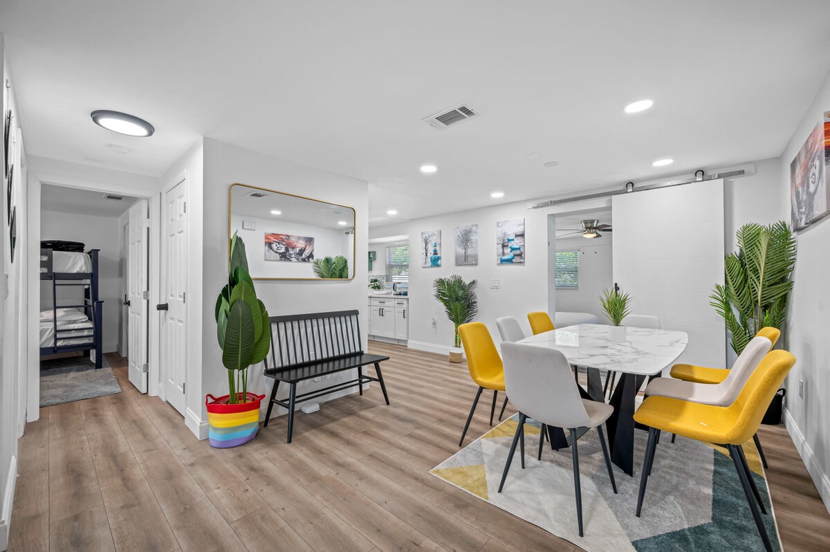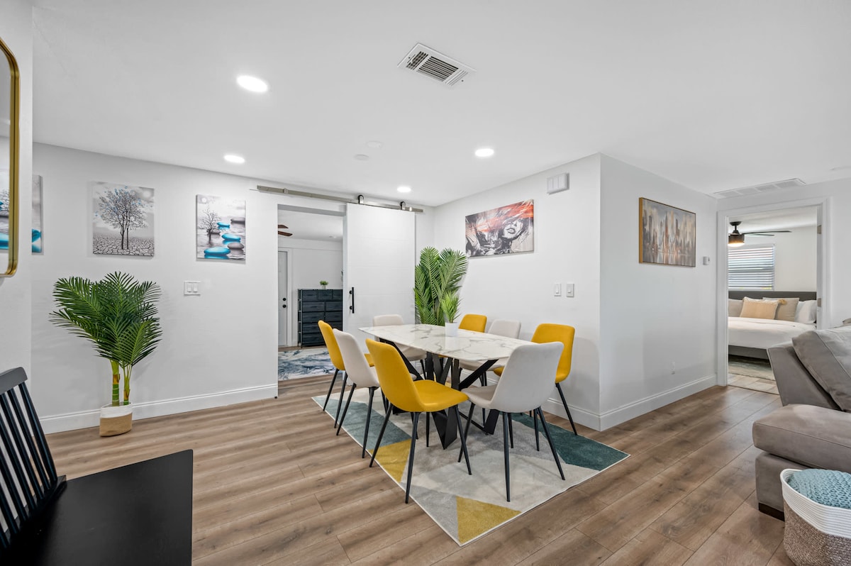Check-in time is 4pm / Check-out time is 11am. Quiet hours 10pm-8am. No unauthorized guests permitted. No smoking inside the house ($750 fine) No pets ($250 fine) **House Rules** We have created this house rules sheet to ensure that you can fully enjoy your stay in our Airbnb rental while also respecting the home and neighborhood. Following these rules will greatly help us as Vacation Rental hosts by making sure the home is taken care of during your stay. Do not hesitate to contact us if you have any questions regarding the items mentioned in this document. We ask that you treat the property as if it was your own property. Please be aware of the condition of items in the house, and if you notice anything broken when you arrive, contact us to let us know. We also ask that you watch noise levels at night, as we have a close relationship with our neighbors and do not want to cause any problems. Please no loud music or disturbances. Noise ordinances for quiet time in the city/neighborhood are at 10pm, so please respect these rules. We want to mention that first so you are aware. Children are welcome here! however - please keep your children safe. Home is not childproofed. 1. Check-in /Check-Out: Check-in time is 4:00 pm. Check-out time is 11 am. Unless otherwise authorized by the management company. We MUST have 24-hour notice for extensions of stay or you will be expected to vacate at the 11:00 am checkout time. All areas of the property are for guest use unless locked and designated as Designedvr employees only. Not all garages are accessible or available for your use. 2. Guest Interaction: We love to meet and greet all guests. However, in the event that this is not possible we also offer self-check-in with a door code. We have the right to ask for ID, the credit card used for booking, or other forms of proof of identity and payment. We may also ask guests to present ID. Person traveling with guest will not be permitted on property before booking guest has arrived and is confirmed with ID. 3. Guest Access - All areas of the property are for guest use unless locked and designated as Designedvr employees only. Not all garages are accessible or available for your use. 4. Maximum Occupancy: The maximum number of guests is limited to the number indicated in the listing. It is very important that the maximum occupancy rule is not violated as this will be considered a breach of the reservation rules and will result in immediate cancellation of the booking. 5. Unauthorized Guests - Although we do not mind if you invite a friend or 2 over to visit, please do not have extra unauthorized guests stay the night or for extended periods of time. We do not allow unauthorized guests to sleep here. Please do not allow extra guests to sleep at the house unless previously agreed upon when you booked the rental. All overnight guests must be listed with the booking and any guests over 10 people limit incur a 50$ per night charge. 6. Parties or Events: We do not allow parties, loud gatherings or events of any sort to be held in the property. Only authorized guests are to be in the house and around the pool area. Music must be kept to a non-disturbing level. NO BIG EVENTS OR PARTIES! Please be sure that extra guests leave by 12am. We greatly appreciate your compliance on this as we do not want any issues with our neighbors or the city. Please understand that any reports or evidence of a party or organized event taking place will be an automatic forfeiture of your entire deposit and immediate vacation of the property. 7. Pets: ABSOLUTELY NO PETS! We do not allow pets of any sort. Any evidence of pets will be an automatic forfeiture of your damage deposit ($250 fine). 8. Smoking: There is to be NO SMOKING inside the property. Smoking is allowed outside on the patio (please utilize ashtrays - do not toss butts in the patio or grass) or outside of the home. Any evidence of smoking inside the home (ie smells of smoke, ashes, burns, etc) will be an automatic forfeiture of the entire damage deposit and an additional smoke remediation fee of $750 will be charged. 9. Trash: All trash are to be bagged and put in waste bins provided. You will find trash bags under the kitchen sink. When the trash can is full, please remove the trash bag and take it to the trash bins. Please make sure all small trash cans have a bag liner before putting trash inside. 10. Inspections: Property Management has the right to inspect the premises without prior notice at any time to enforce the terms of this agreement. Should the guests violate any of the terms of this agreement, the rental period will be terminated immediately and no refunds will be given. The guests waive all rights to process if they fail to vacate the premises upon termination of the rental period. The tenants shall vacate the premises at the expiration time and date of this agreement. 11. Security Deposit: A security deposit is required to reserve the house. You will be required to submit payment using the payment link provided within 48 hrs before check-in. The deposit is in addition to the nightly rate and will be refunded in the same manner paid provided the following provisions are met: *No damage is done to the unit or its contents *All debris, rubbish, and trash are placed in trash cans and soiled dishes are placed in the dishwasher and cleaned. If the house is left excessively dirty and there is excessive trash left in the house, there will be an additional cleaning fee deducted from the deposit for the extra cleaning time. The guests will be notified immediately. *No linens are missing, damaged, or excessively stained *The Occupancy limit of the house is not exceeded at any time unless approved in writing in advance *There are no police enforcement actions by the City or Homeowners /and items 4,5,6,7,8 and 9 are adhered to and there are no violations of house rules as posted in the house. 12. Check-out: Check-out time is at 11:00am unless a late check-out is purchased 