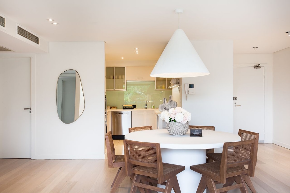 What We LoveEscape to your next oasis, this peaceful and private executive penthouse. Impeccably furnished throughout with styling from one of Sydney’s top interior designers, this stunning penthouse forms a sophisticated backdrop for your daily life, whether you’re working away, or looking for an extended retreat.