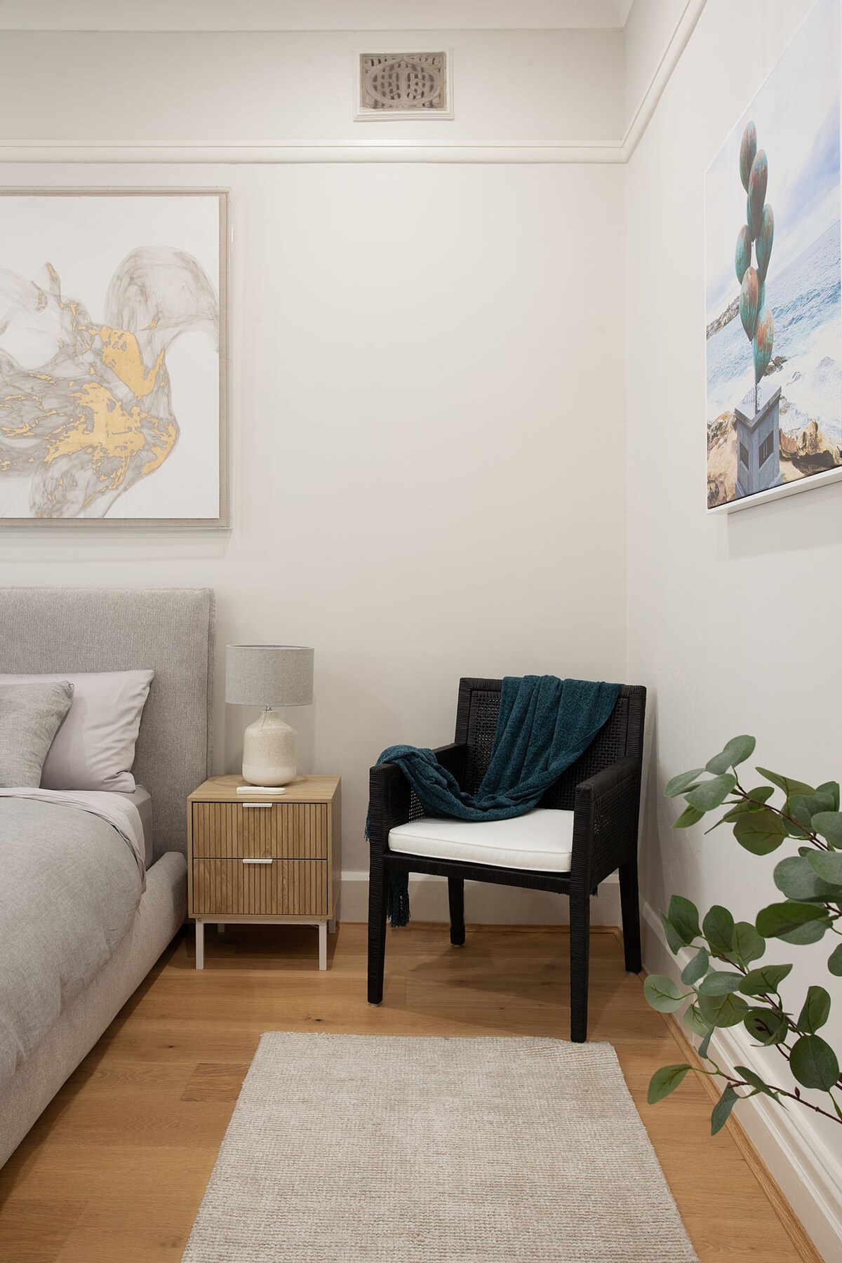 After a day spent exploring one of the city's most vibrant neighbourhoods, it’s important to retreat to a tranquil sanctuary. The three bedrooms in this home strike a perfect balance between luxury and serenity. Captivating artwork, twinkling mirrors, and greenery deliver effortless comfort to each room. The double bedrooms offer a choice of a king or queen-sized bed, while the third bedroom, ideal for families or larger groups, features two king-single beds. The family bathroom is equally serene, with marble walls, a waterfall shower, and a fluted glass screen, combining elegance and modernity to complete your escape.