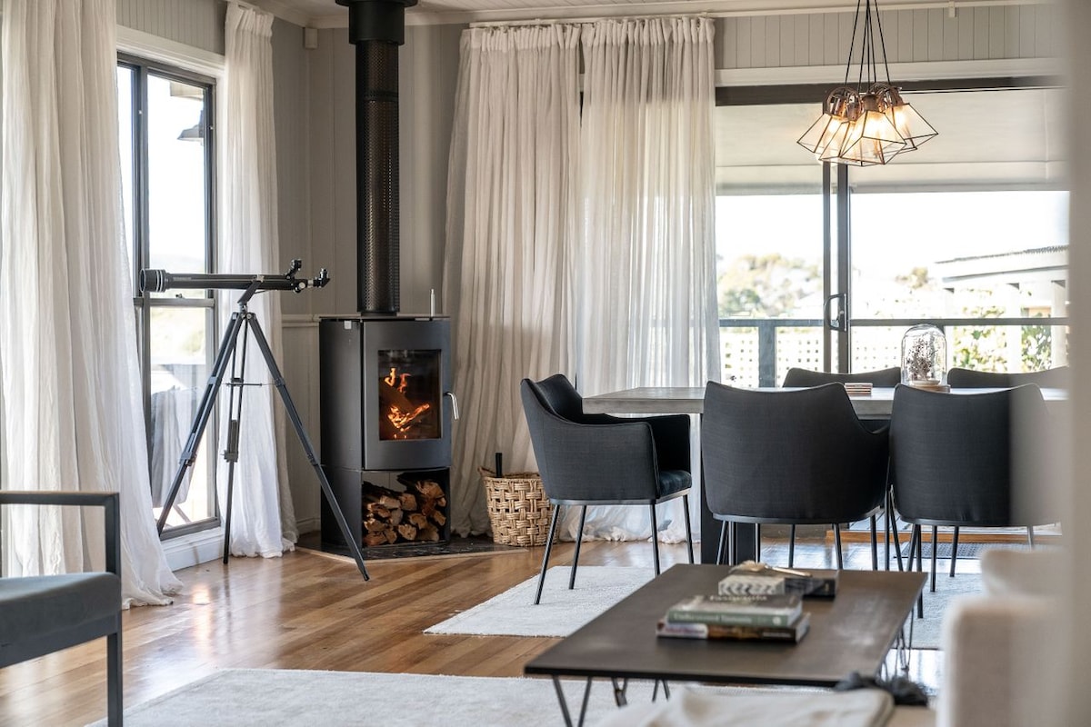 Beautifully styled and furnished accommodation with stunning views - you can even see the lighthouse shining at night which is lovely. Very fast wireless internet compared to other accommodations in Tasmania we have been in and bedding was comfortable. We were there on a cold day but no issues keeping warm with both fire and reverse cycle working very well. Highly recommended.