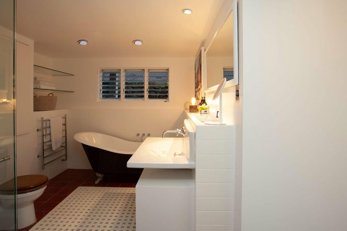 - Bathroom fit with a timeless clawfoot tub and heated towel railings