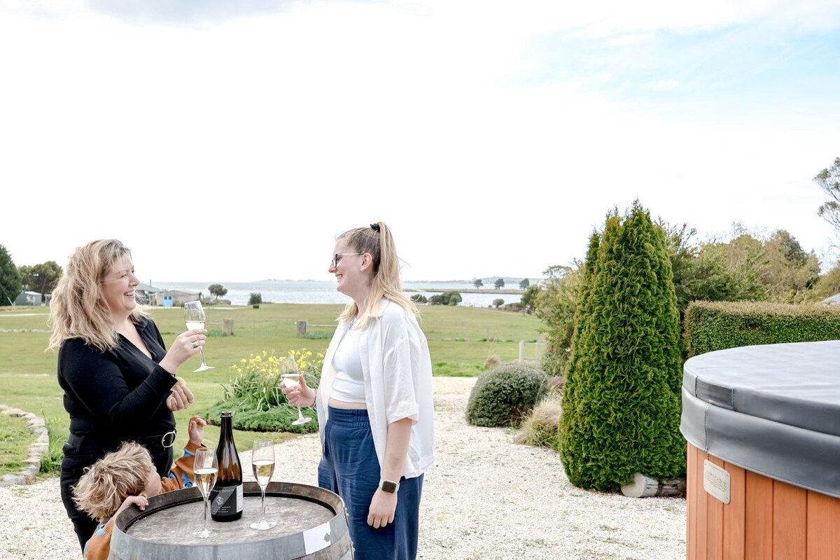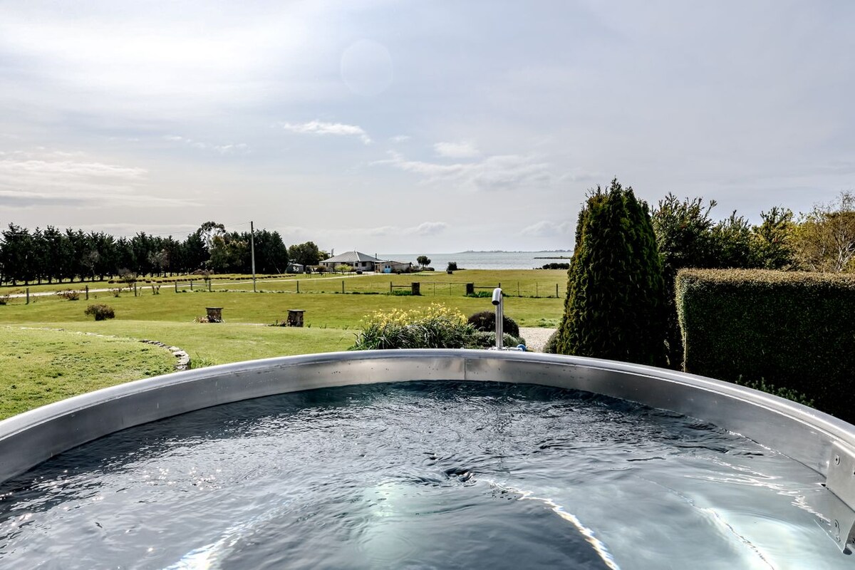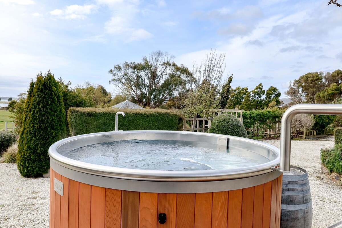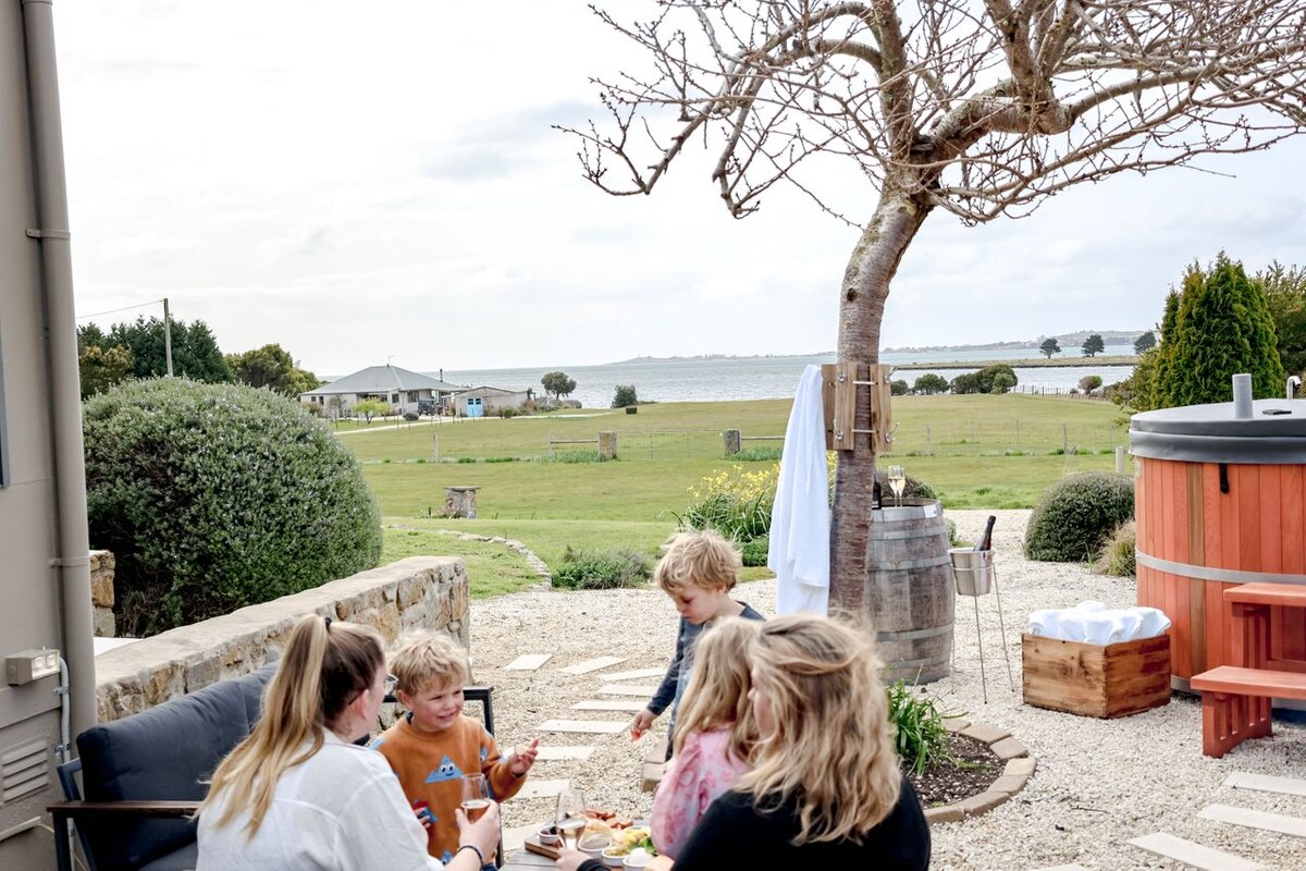 What We LoveEscape to the lap of luxury on 2.5 acres of absolute waterfront, where paradise meets perfection. Nestled at the tip of the Tamar Valley wine region, our Chateau boasts a private beach, hot tub, restaurant-quality pizza oven, and breathtaking 180-degree views of the Tamar River and ocean. With 4 spacious bedrooms, 3.5 bathrooms, and a layout designed for groups, it's the ideal haven for multi-family bookings, couples, or anyone seeking a memorable holiday experience.