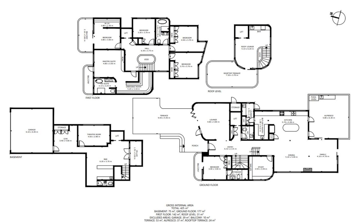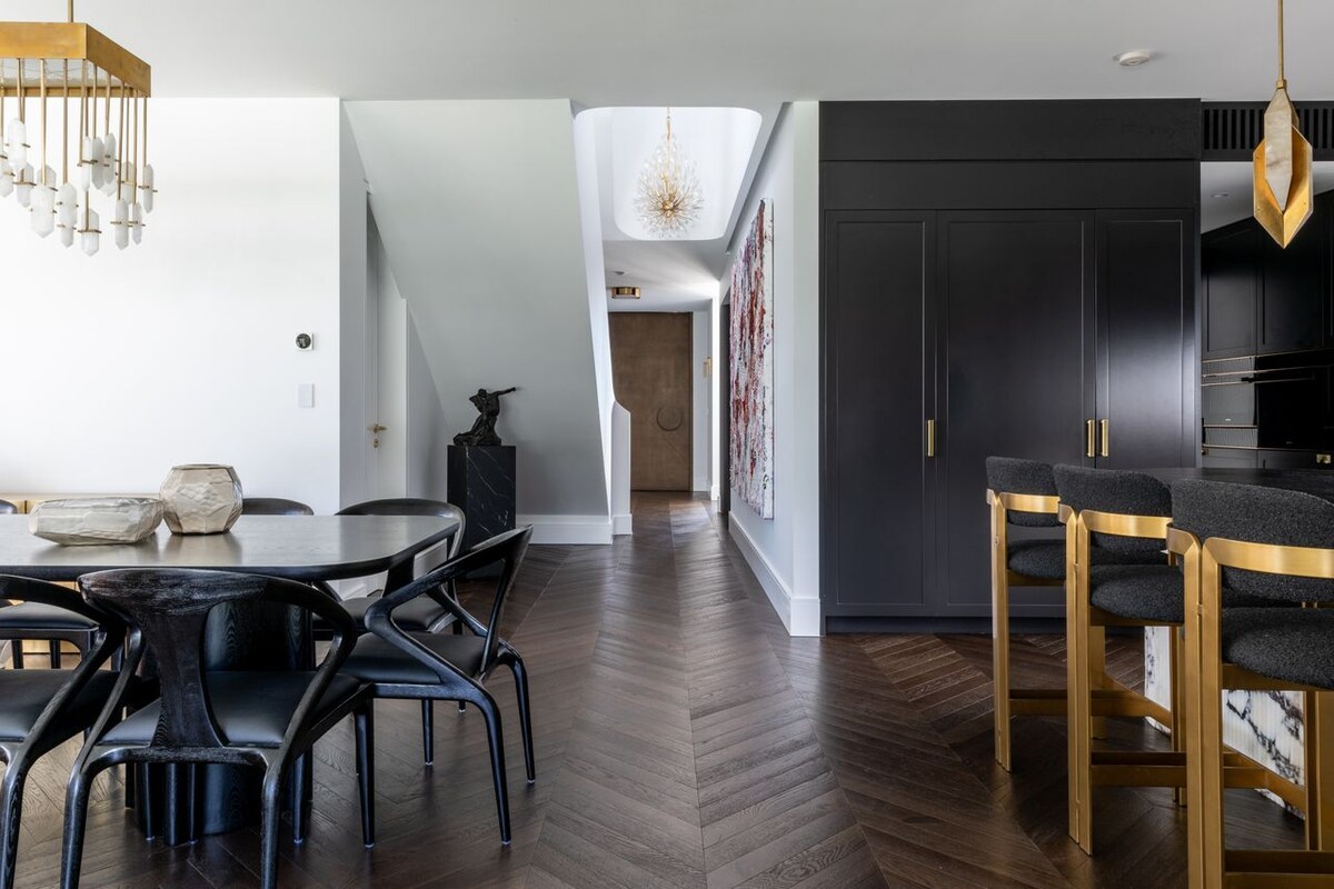 An entertainer's paradise, this home boasts a variety of indoor and outdoor spaces perfect for sophisticated soirées. On hot summer days, there’s nothing better than retreating to the top floor of this split-level home to sunbathe on the roof terrace. Find sleek outdoor seating, and uninterrupted Harbour Bridge views create a tropical vibe with quintessential Sydney charm. The terrace is complemented by a stylish bar area, offering the ideal setting to mix a refreshing cocktail. On the lower ground floor, you’ll find a second sumptuous bar area, fully equipped with a zip tap and Vintec fridges to keep your local wines perfectly chilled until dinner. This upmarket home is not just about dining and drinks, however. A wellness haven awaits, with a high-spec gym featuring a top-of-the-range reformer Pilates bed, Peloton bike, bench press, and weights. After your morning workout, cool off in your private pool, or, better still, make a day of it—enjoy a family game of basketball on the lawns, splash in the pool, and finish with a barbecue or alfresco pizza, fresh from the pizza oven.