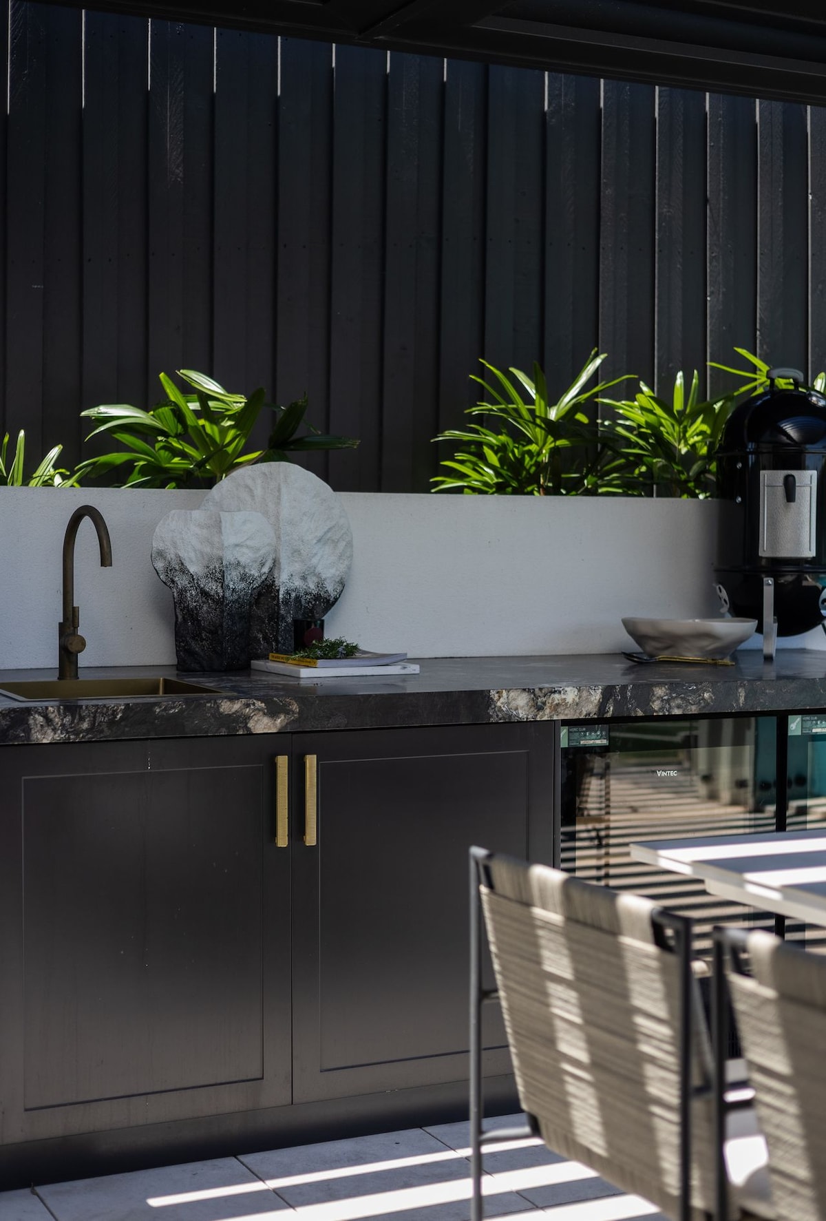 - Outdoor kitchen with Electric or coal Heston Blumenthal BBQ with rotisserie, Pizza oven and Weber smoker