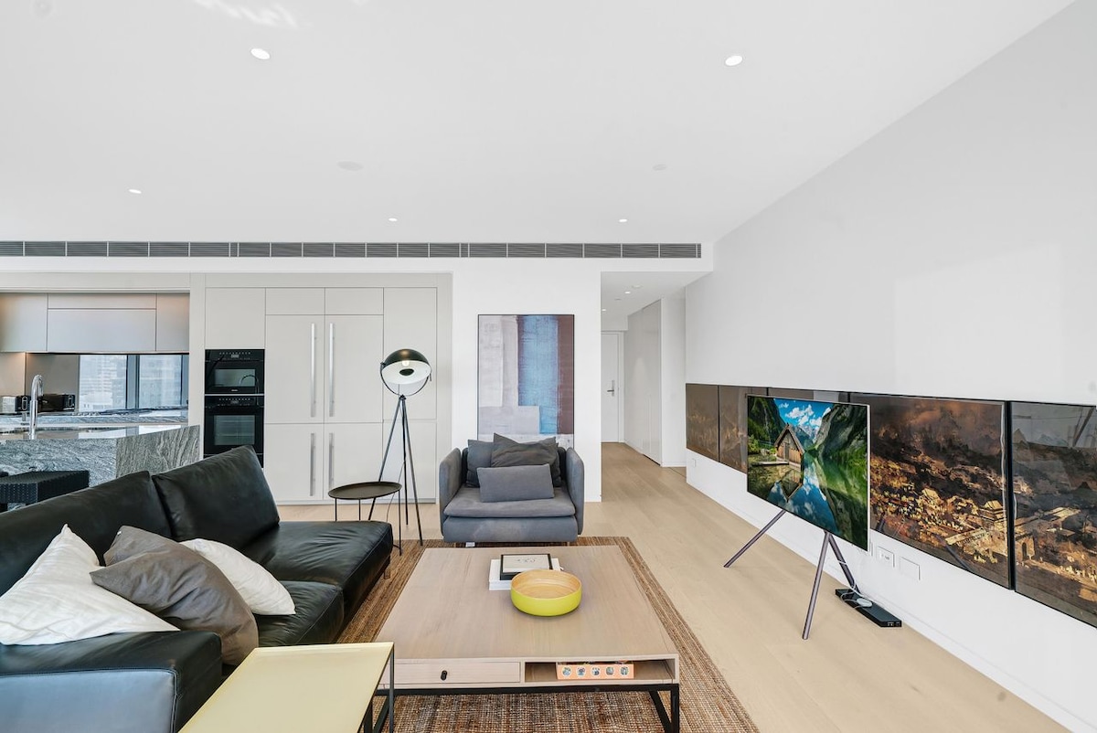 What We LoveThis thoughtfully designed Sydney apartment offers a new benchmark in luxury living. Modern elegance unfolds across a stylish open-plan space boasting skyline views alongside considered materials. Housed in The One, which celebrates the shimmering light and water that defines Sydney's iconic landscape, this is the obvious choice for an unforgettable stay in Barangaroo.