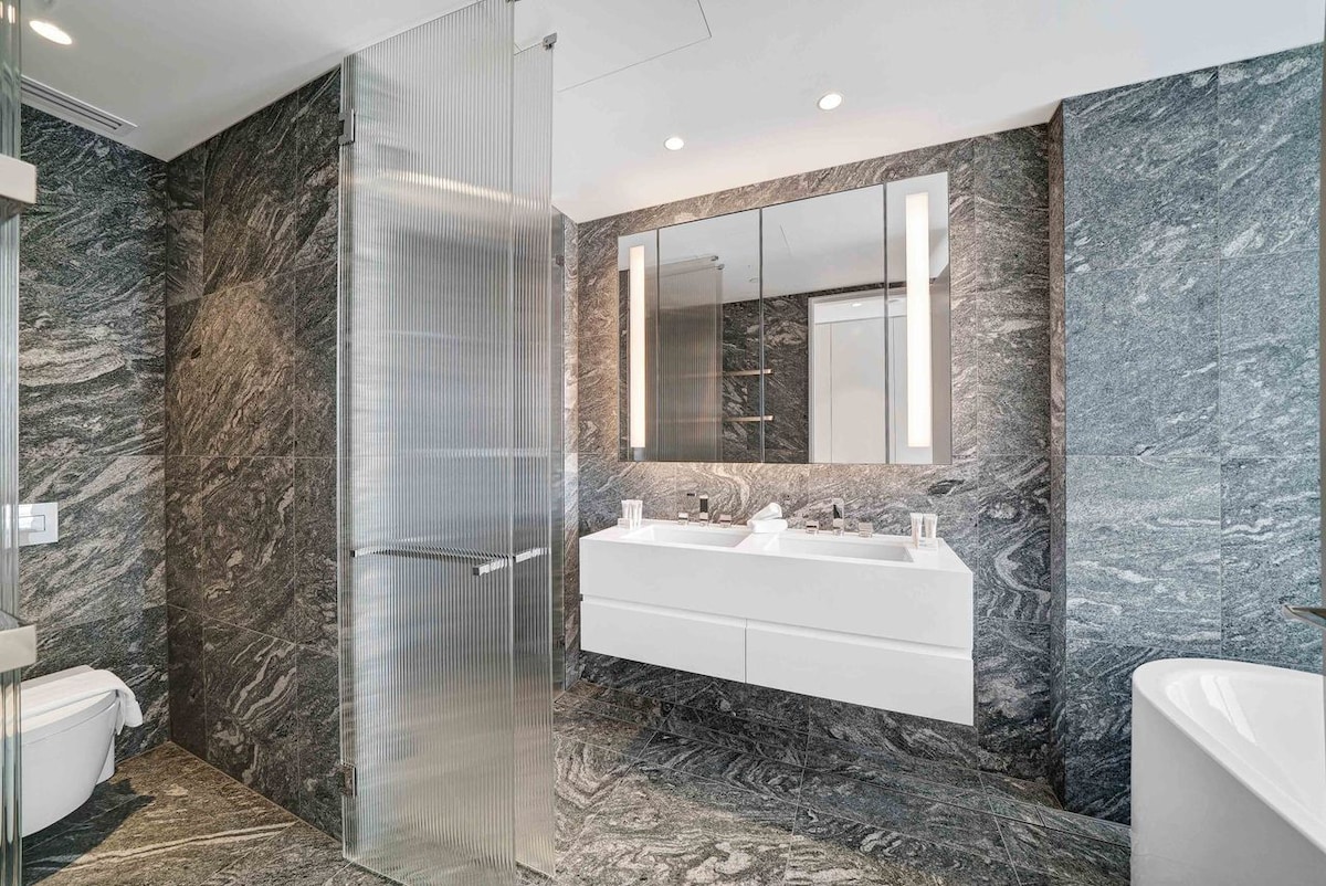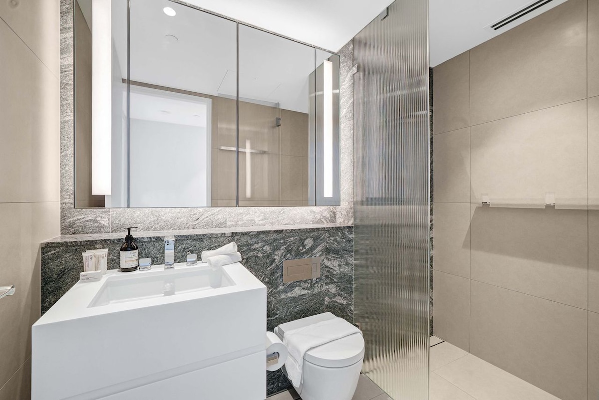 This modern-classic apartment boasts two stunning bedrooms in the more private spaces. The master is a calming oasis, home to a dreamy King bed, floor-to-ceiling windows and a luxurious ensuite, continuing the marble detailing found in the main spaces, cocooning an inspired double shower. The second bedroom boasts a Split King and access to the elegant family bathroom with a toilet, basin and powerful walk-in shower is available, delivering plenty of space for a group of 4.