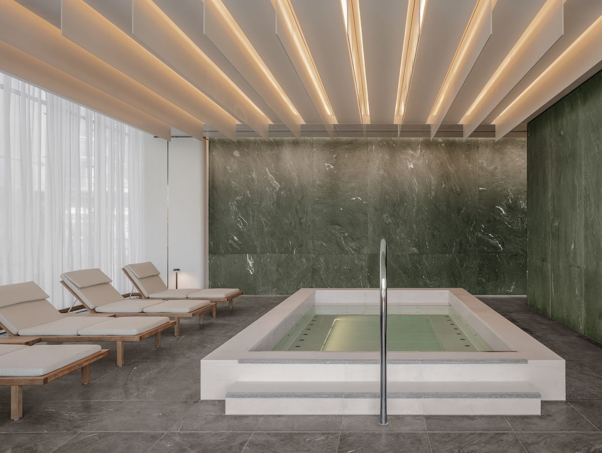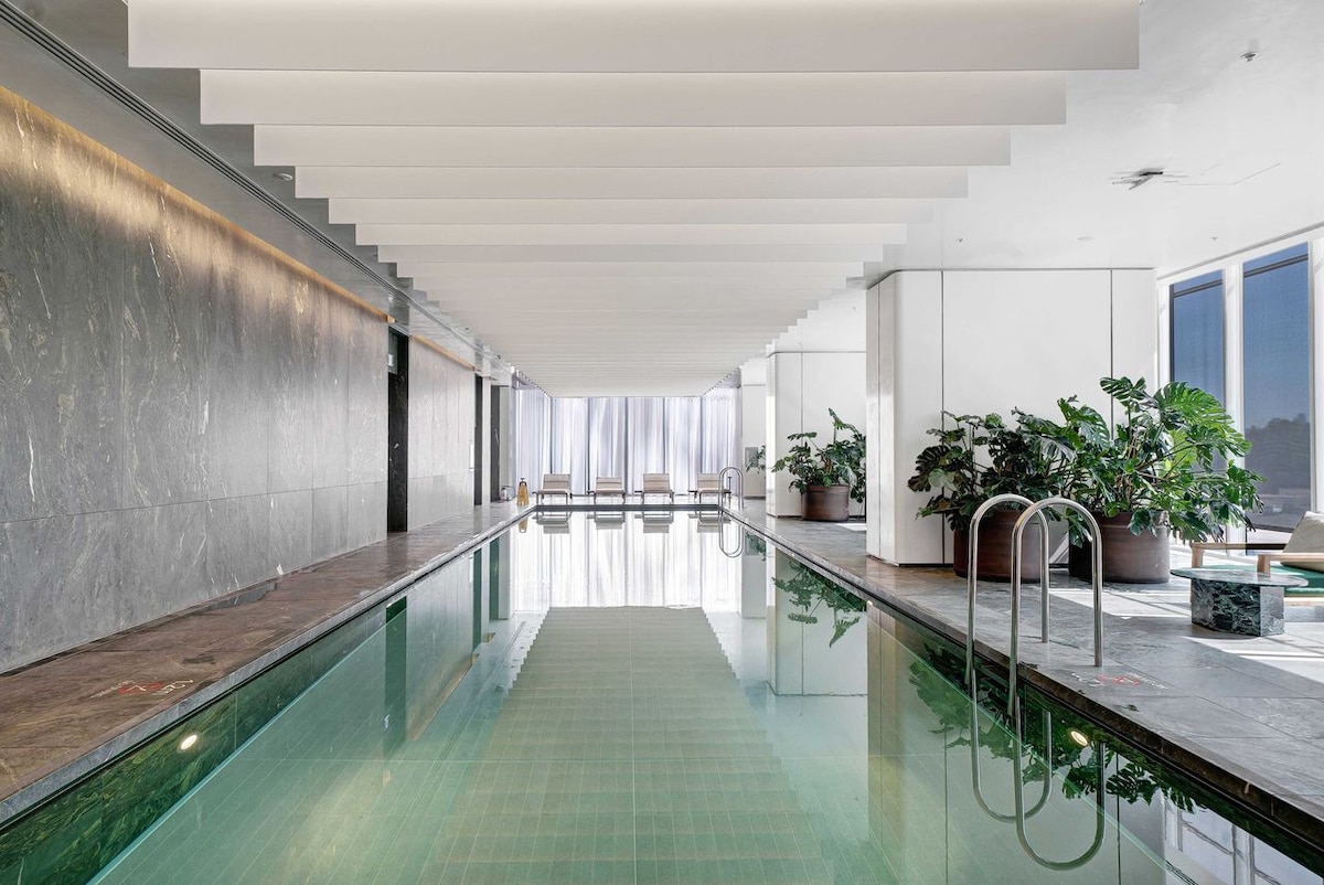 The open-plan layout delivers a contemporary space designed to harmonise with the stunning harbour views and the Blue Mountains beyond. A marble kitchen island offers a luxe cheffing experience, connecting you to your picturesque surroundings as you prepare a delicious brunch. This timeless kitchen also boasts a bar and wine fridge, the perfect way to slip from day to night. From the kitchen zone, spill into the sumptuous leather seating area, or work at the chic dining table, both making the most of the L-shaped windows to take in the perfect aspect of those stunning views. Further entertaining spaces equip this apartment with all a modern traveller would need; a home office is available for working away during longer stays, and for warmer occasions you can relax on a private covered balcony, again spoiled with those prized Harbour views. Enhancing the experience of luxury living, our 24/7 concierge and lifestyle managers are available onsite to cater to your needs throughout your stay. Enjoy exclusive access to the opulent fitness centre, complete with an indoor heated pool, steam room, and state-of-the-art gym equipment. Indulge in private dining and lounge areas, including a dedicated billiards room for entertaining guests.
