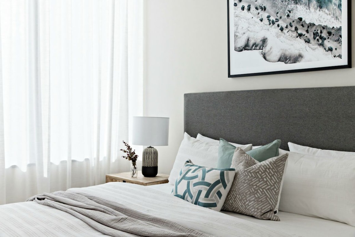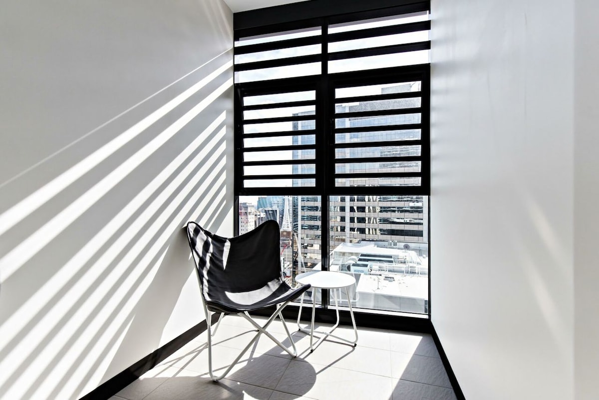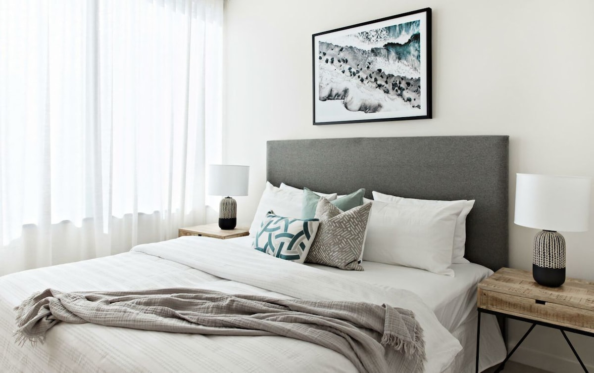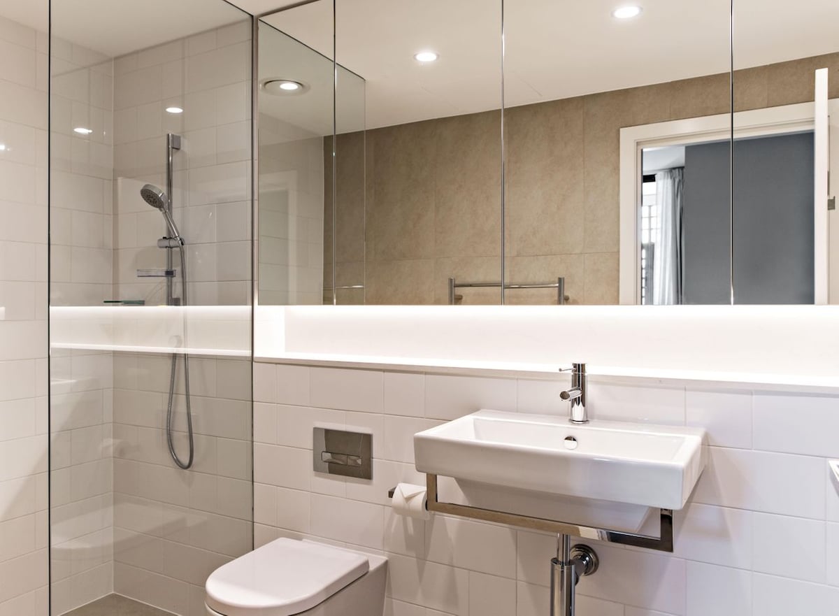 Modern panelling skillfully conceals the kitchen in the open-plan living space that makes up the heart of this home. Soft lighting, crisp white walls and floor-to-ceiling windows create a light and comfortable space, perfect for relaxing after a long day exploring Sydney. You'll have all the space you need, as there are two full bedrooms each with their own bathroom, for your convenience in the mornings!