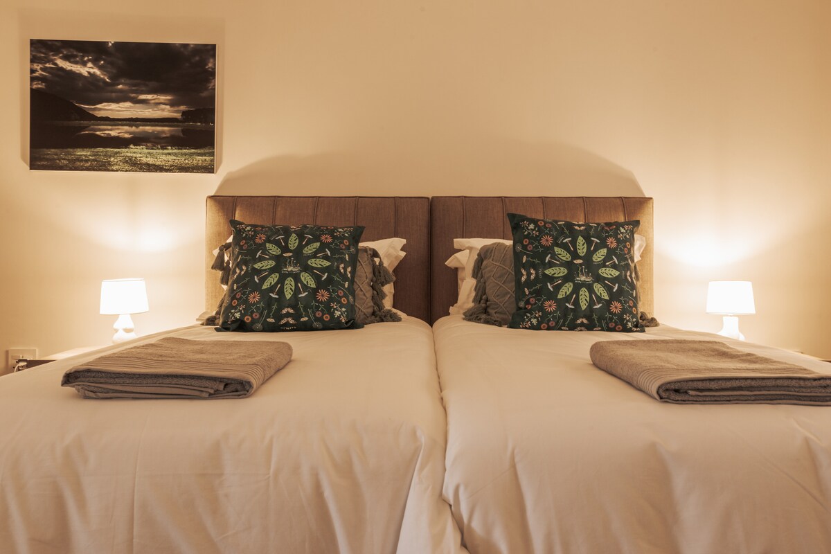 The 3 bedrooms are both beautifully decorated, with comfortable beds and soft 100% cotton bedding to ensure a good night's sleep. The primary bedroom boasts a king-size bed, while the second bedroom features two twin beds, and the 3rd bunk beds (perfect for kids) making it ideal for families or friends traveling together. the primary and secondary bedrooms have ample cupboard space for storing your belongings. The 3rd bedroom has an office desk and chair for those who need to get some work done.
