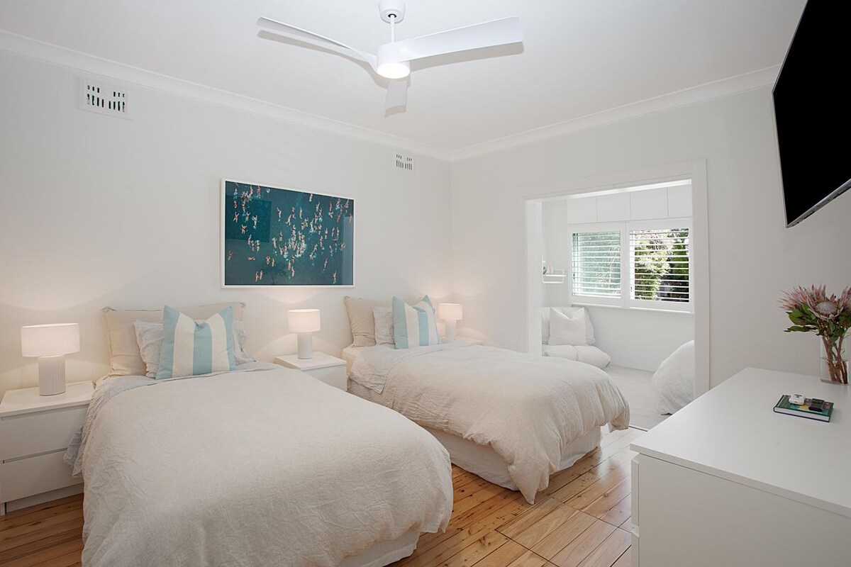 Restful and minimal 2-bed apartment, minutes from the iconic beach