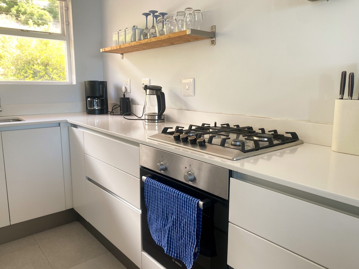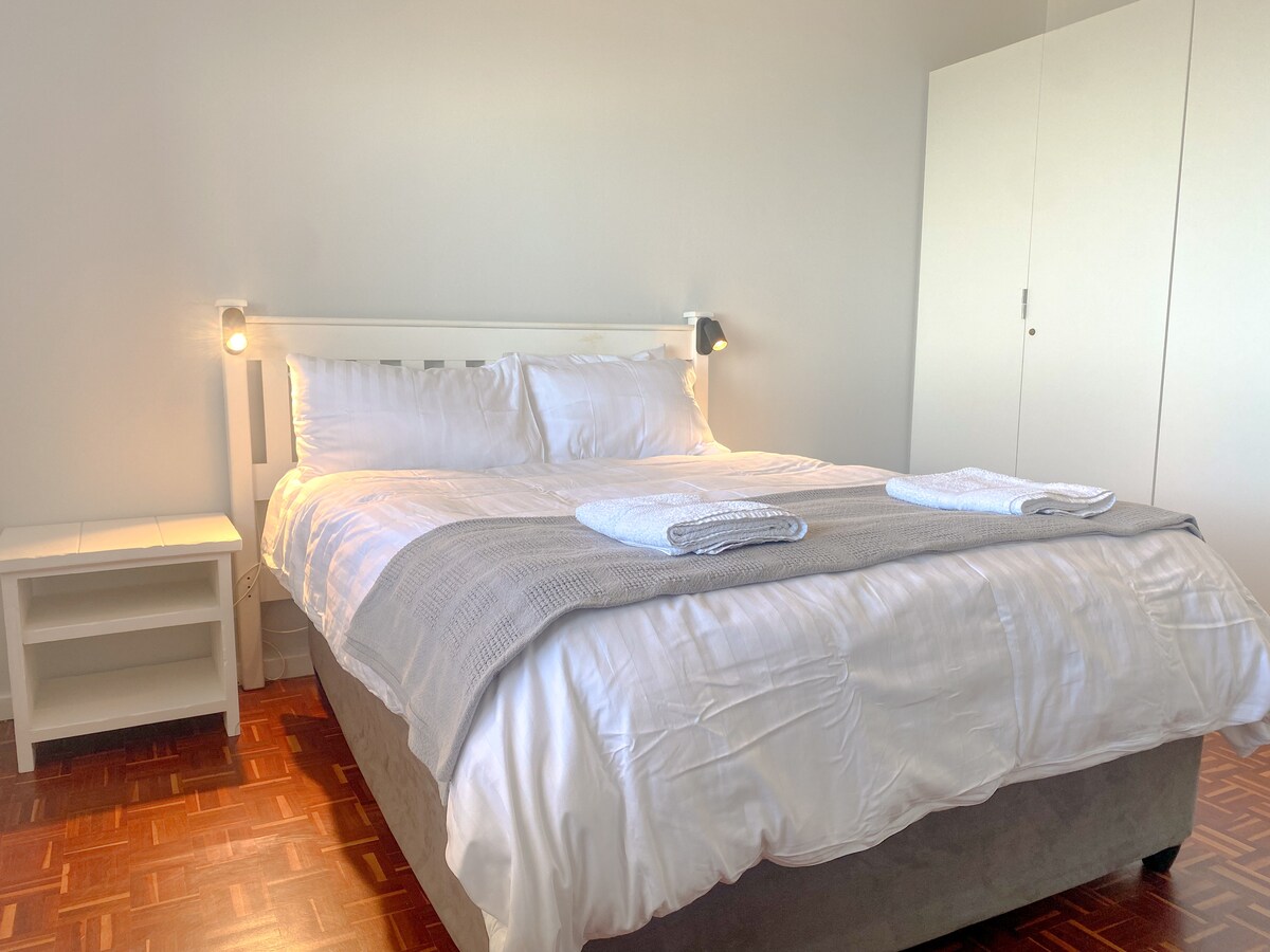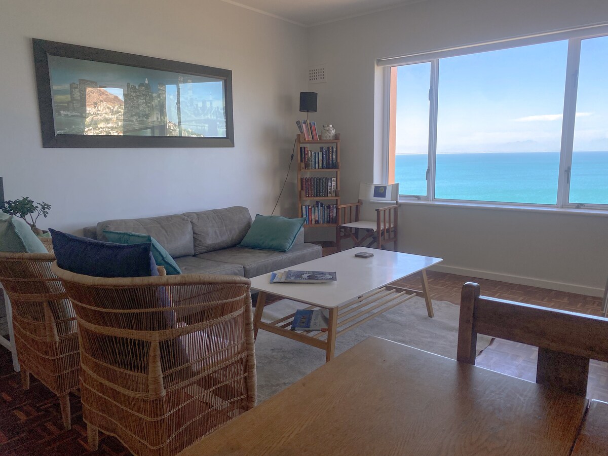 Perched on the 3rd floor with sweeping views of False Bay and the SA Navy harbour, this stylishly furnished apartment offers the perfect lock-up-and-go base for up to four guests. Wake up to spectacular sunrise views from the comfort of your own space, and step out onto the private balcony to soak in the ocean air with coffee or end the day with a glass of wine as the sun sets behind the mountain.Inside, the apartment features two bedrooms – one with a double bed and the other with two singles – along with a modern bathroom with a large shower. The fully equipped kitchen includes a washing machine and dishwasher, while the open-plan lounge and dining area invite easy relaxation and conversation, framed by a panoramic window that bring the sea and sky indoors.