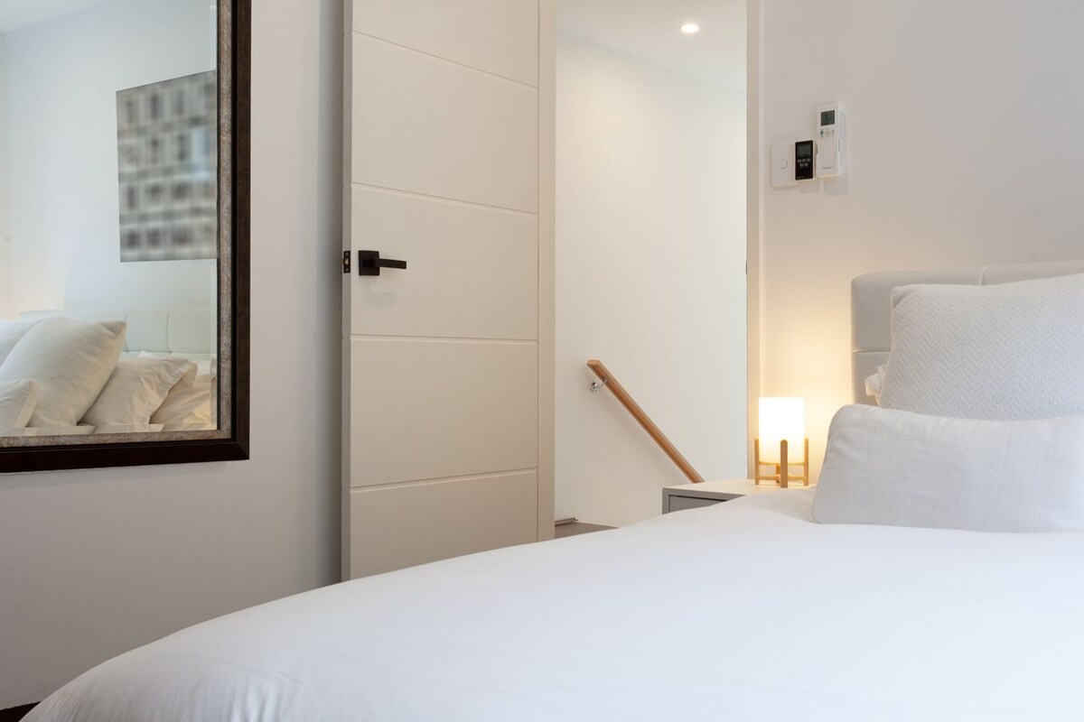 This stunning split-level home boasts a gorgeous entertaining space on the ground floor. An open-plan kitchen and diner beckon for days spent relaxing and entertaining. The stylish kitchen, adorned with pristine marble accents, beckons culinary enthusiasts to create gourmet delights amidst a backdrop of contemporary elegance. The formal dining table is the perfect space for dinner parties, and this entertaining space comes complete with a built-in marble bar and wine fridge. A leather sofa and flatscreen TV complete this floor, opening onto a bijoux terrace and garden with seating and BBQ, perfect for those warmer days. Ascending to the second floor you can relax or work in a stylish mezzanine loft, boasting a relaxing ocean view.