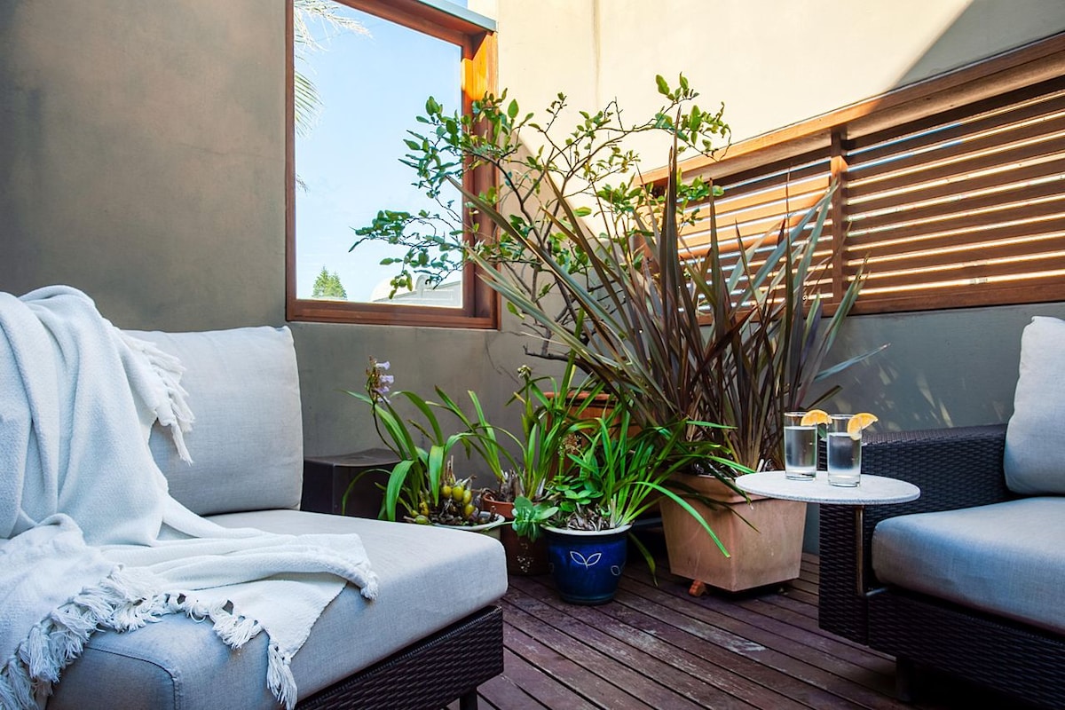 There is a second gorgeous outdoor deck that is the perfect place to unwind with a good read, or delicious summery drink on relaxed seating under the sunshade umbrella.