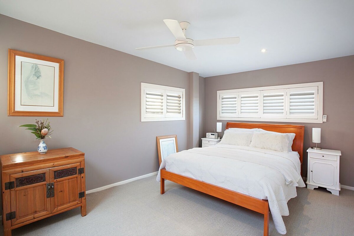 Further upstairs, you’ll find the master suite which features a queen bed, thoughtful furnishings and partial sea views from the balcony that is off the master bedroom. All bedrooms have ceiling fans for climate control and comfort! There is a wet room style ensuite off from the master bedroom with shower and toilet.