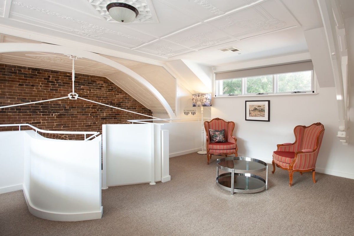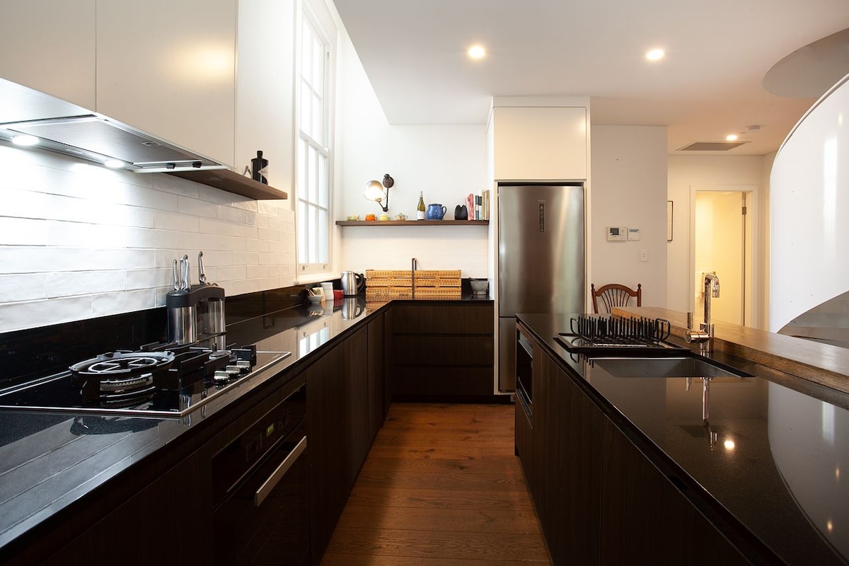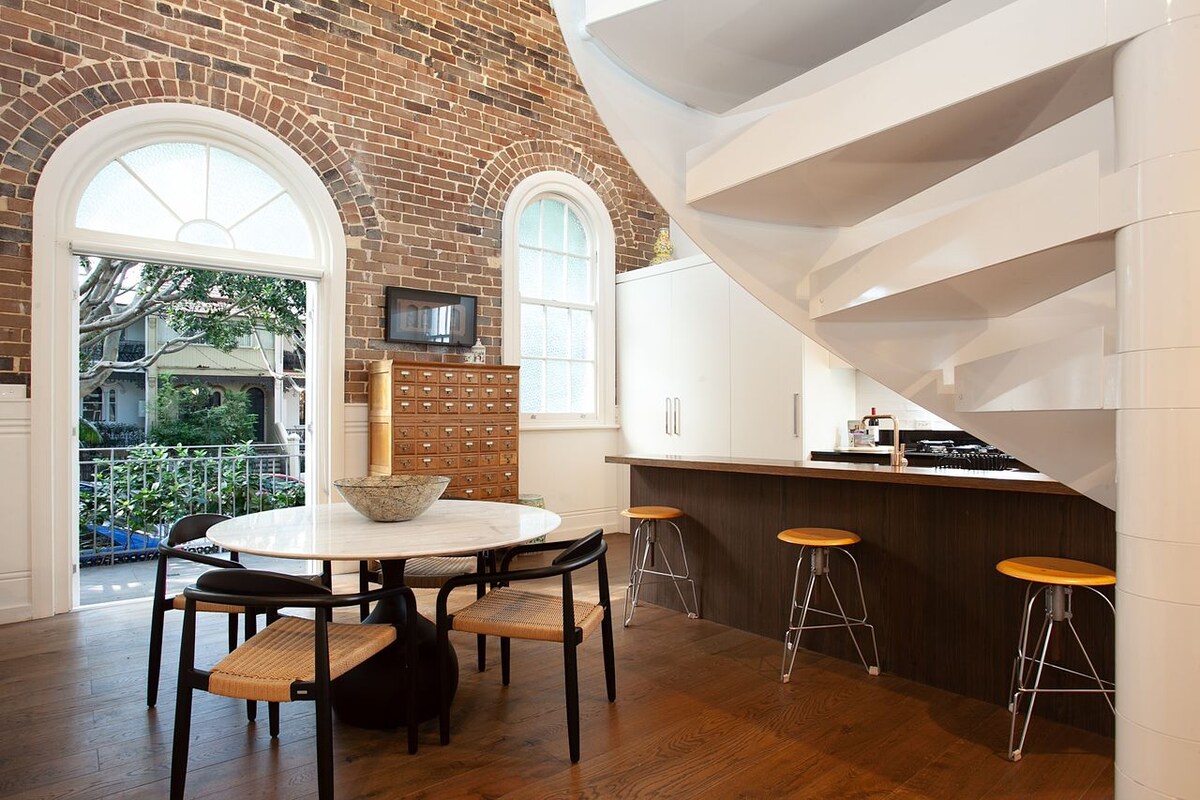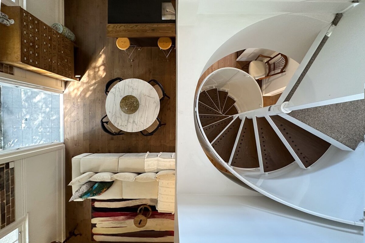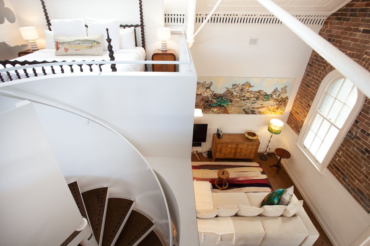 Designer three bedroom home in historic building with spiral staircase and private balcony in central location