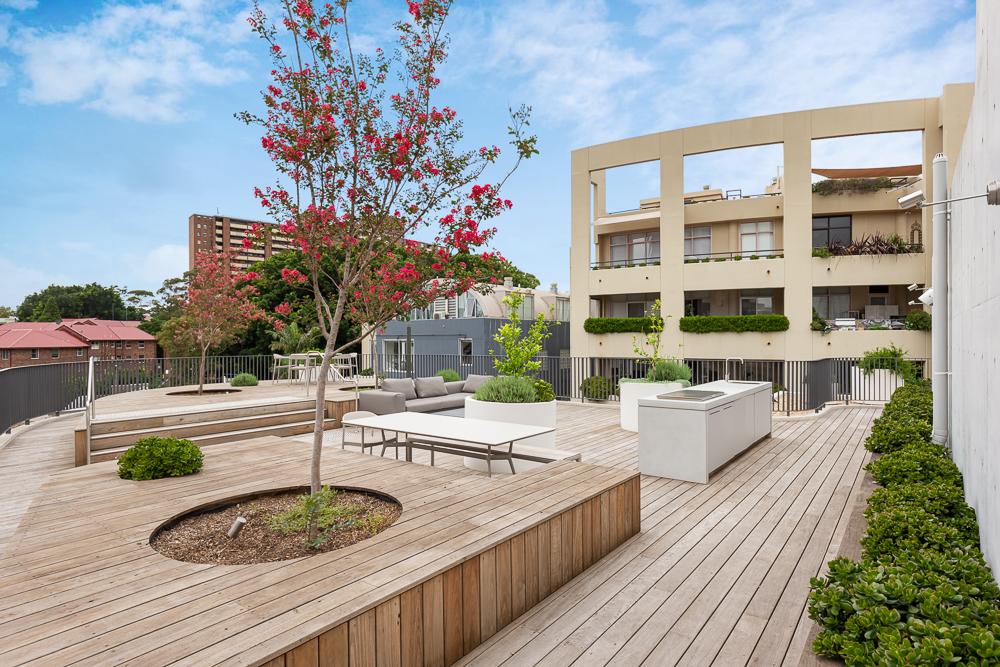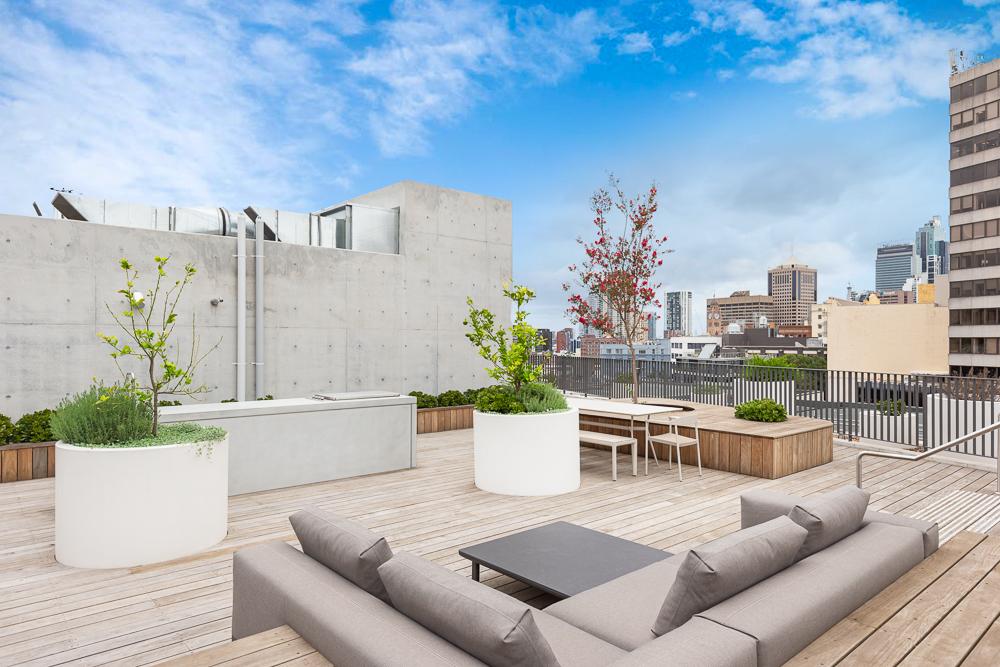 If you want to dine al fresco and enjoy the weather, we suggest the shared rooftop terrace. It features a BBQ, modular lounge, dining table and beautiful greenery and cityscape views with lights that sparkle at night.