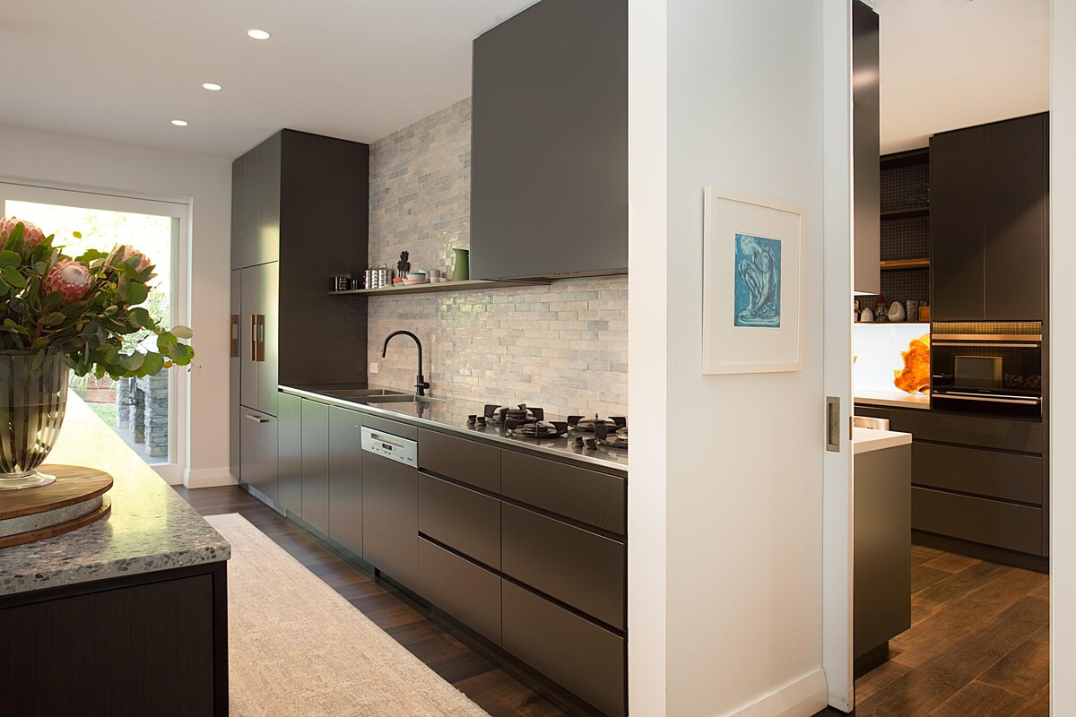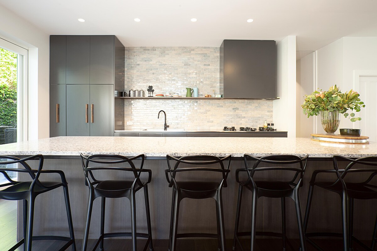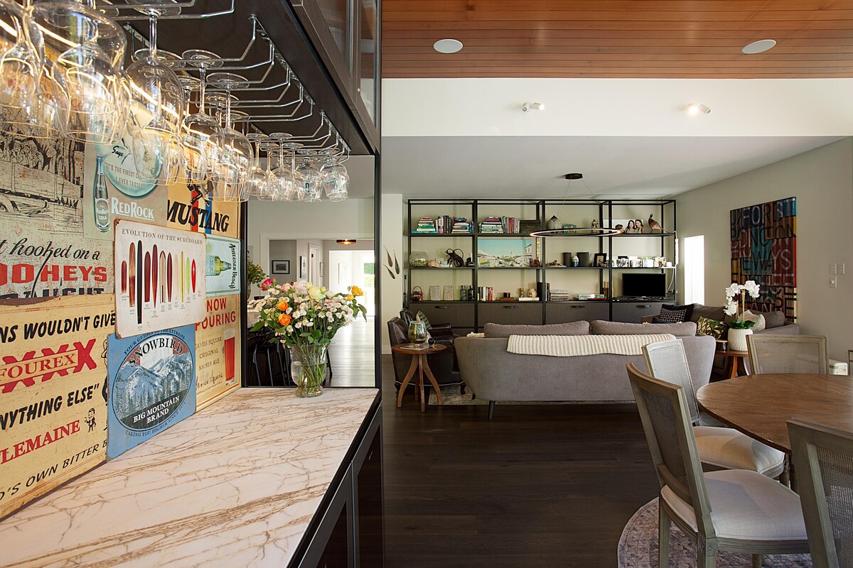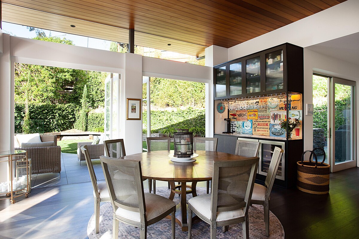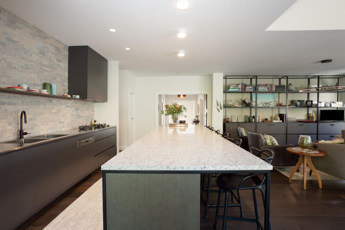A superb example of broken plan living creates distinct entertaining spaces, each with its luxurious charm, whilst keeping you connected to the rest of the space. Think grand marble-topped breakfast bar overlooking a chic sofa arrangement next to statement modern art and lighting; follow the room around and you'll find a formal indoor dining table and a luxe cocktail bar. Full-sized sliding doors surround the space, extending your relaxation into the sublime fenced garden, and inviting you to make use of the barbeque, alfresco table and of course your private pool. Offering peace and privacy alongside unbeatable space and delights this is the perfect place for a family to relax and unwind. Encourage your teens to command the barbeque whilst you mix cocktails and mocktails at the bar before a casual poolside evening.