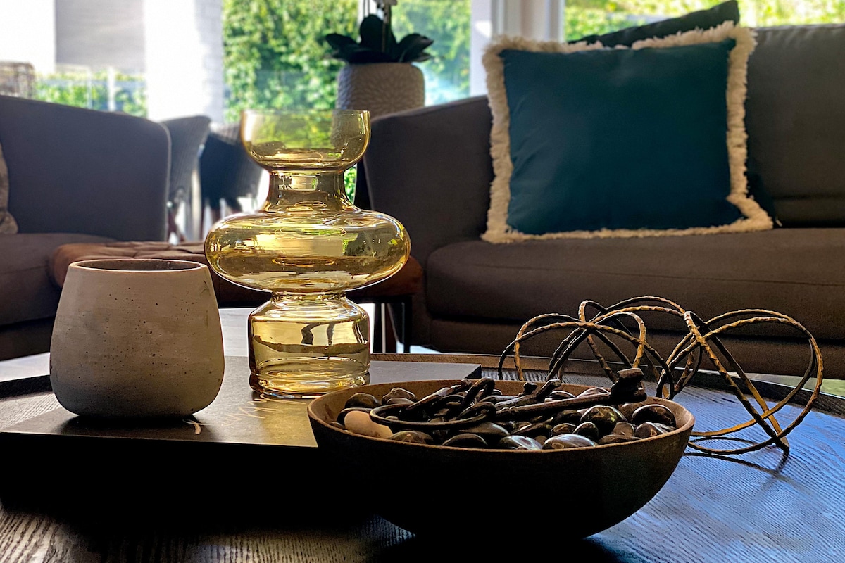 For a bit of alone time, you can also find a smaller, cosy living room, where chic boucle armchairs overlook a grand fireplace - the perfect reading nook. The five bedrooms in this grand home allow you ample space to relax and unwind, with the ensuite master opening onto a sunny balcony. Two of the bedrooms also provide desk space, making this a great choice for a working holiday.