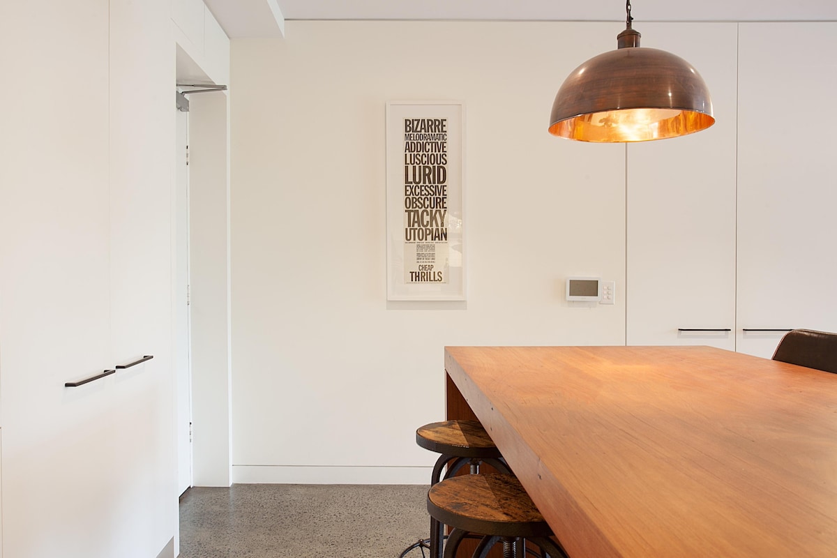 - The apartment has been renovated to high level with eco-friendly finishes and fittings throughout. This includes low VOC cabinetry, zero VOC paints and finishes, local recycled hardwood dining table, local bluestone in bathroom, LED lighting.
